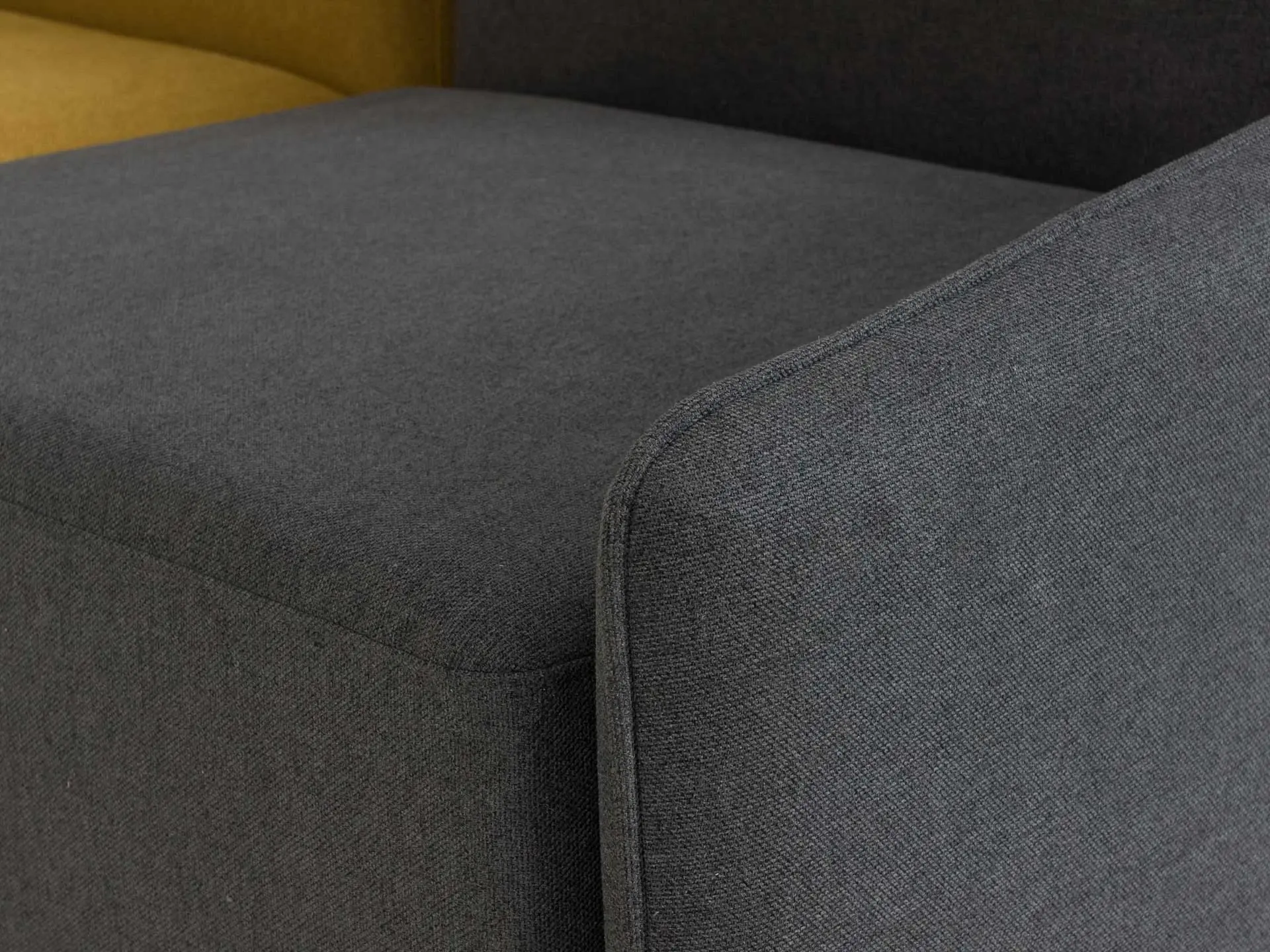Угловой модуль квадратной формы может располагаться слева или справа. Сиденье оснащено механизмом подъема с пневматическими лифтами. Под ним расположено отделение для хранения.