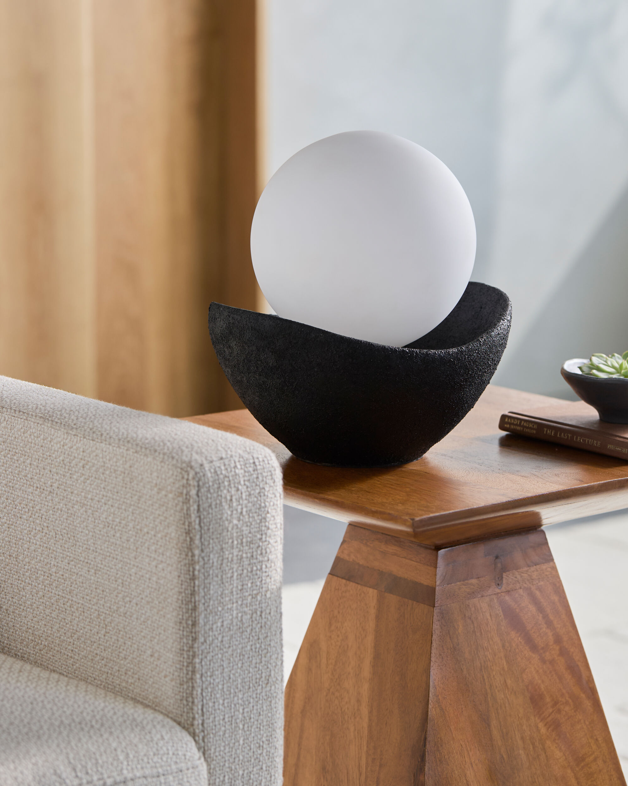 Чёрная настольная лампа “Мейперл” – это сочетание стиля, элегантности и функциональности. Она является не только источником света, но и самостоятельным элементом декора для вашего дома. Дизайн лампы напоминает по своей форме лодочку, что придает ей уникальный и запоминающийся вид. Основание обеспечивает устойчивость лампы, а стеклянный белый плафон молочного цвета создает мягкое и приятное освещение в помещении. Благодаря своей нейтральной цветовой гамме, “Мейперл” легко вписывается в любой интерьер и легко сочетается с другими элементами декора.