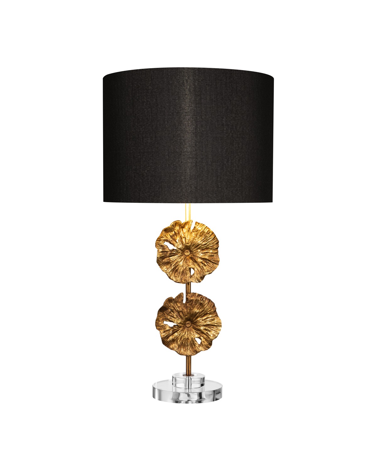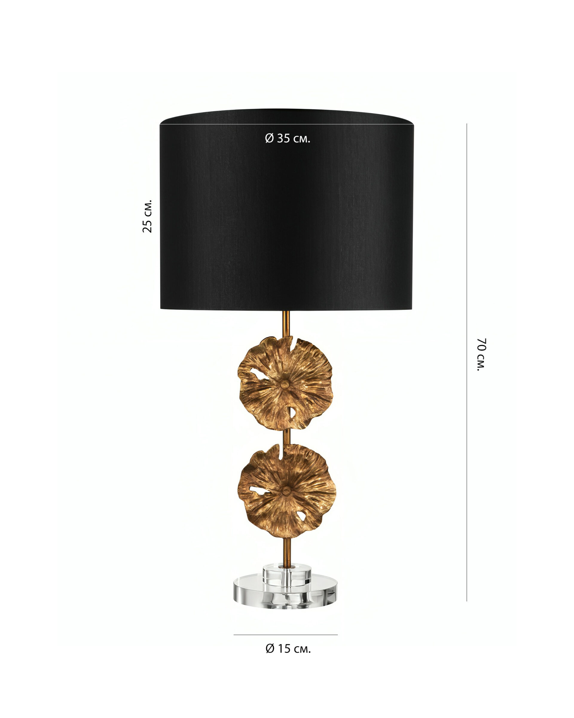 Настольная лампа “Энкам” – это стильное решение для любого интерьера. Она выполнена в современном стиле, что делает ее подходящей для различных помещений. Металлические акценты на основании лампы, напоминающие по своему силуэту тропические листья, придают лампе особый вид и оригинальность. Черный цилиндрический абажур создает мягкий и приятный свет.