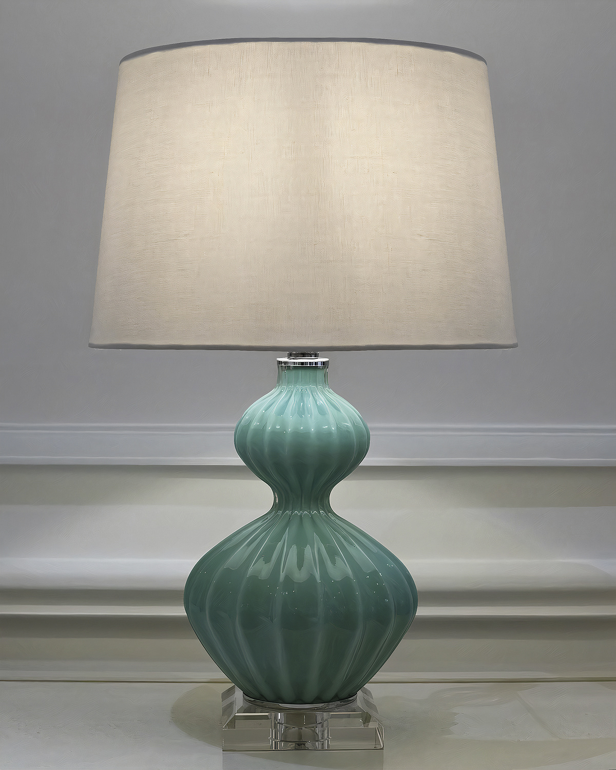 Тип цоколя: Е27. Напряжение: 220 Вольт. Длина провода 1,4 м. Материал абажура: 100% хлопок.Тип розетки: евро.Привлекательная настольная лампа "Майра" с изящным рифленым силуэтом в морсов цвете, который обеспечивает дополнительную текстуру. Настольная лампа от прозрачного основания до белого оттенка абажура, осветит комнату сиянием и элегантным стилем.23,5 см. х Ø 35 см.
