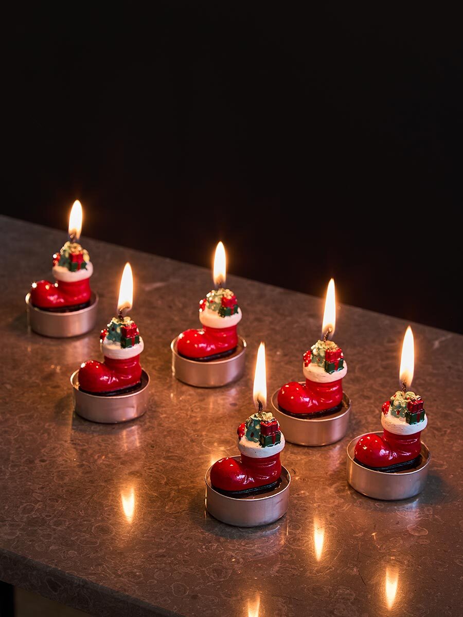 Набор декоративных свечей Festive stocking из коллекции New Year Essential в форме традиционных сапожков с подарками поможет создать праздничное настроение, добавит в атмосферу новогоднего торжества теплое мерцание живого огня. Эти маленькие свечи станут полноценным элементом декора или частью красивой рождественской композиции с елочными шарами, мишурой и другими украшениями. Особенности и преимущества: - Свечи имеют устойчивое основание, но под них лучше использовать специальные подсвечники, чтобы плавящийся воск не попадал на столешницу или другую поверхность. - Изделия из качественного парафина при горении не выделяют токсичных веществ, поэтому безопасны для здоровья человека и домашних животных. Материалы: парафин. Размеры: 14,1x9,3x5,8 см. ! Не оставлять без присмотра горящую свечу ! Использовать вдали от легковоспламеняющихся материалов ! Беречь от детей и домашних животных ! Зажигать свечу, предварительно расположив ее на подсвечнике