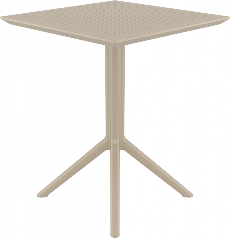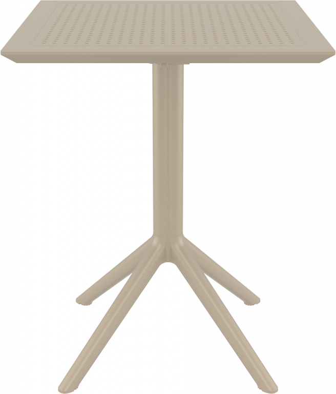 Квадратный складной пластиковый стол Sky Folding Table со столешницей из погодостойкого пластика и каркасом из стали (внутренний стержень). Пластиковые столы серии Sky станут отличным выбором для обстановки фуд-кортов, кафе, ресторанов и баров. Благодаря использованию высококачественных материалов, они долгое время не теряют своего привлекательного внешнего вида, даже несмотря на активную эксплуатацию. Их можно использовать в помещении и на открытых площадках. Особенности: столешница изготовлена из погодостойкого пластика; металлический каркас не ржавеет, не поддается коррозии; устойчив к ультрафиолету и атмосферным осадкам, выдерживает минусовую температуру до 20 градусов; может быть разобран; возможность складывания; подходит для использования в помещении и на открытом воздухе. Открыть технические характеристики. Открыть инструкцию по сборке.