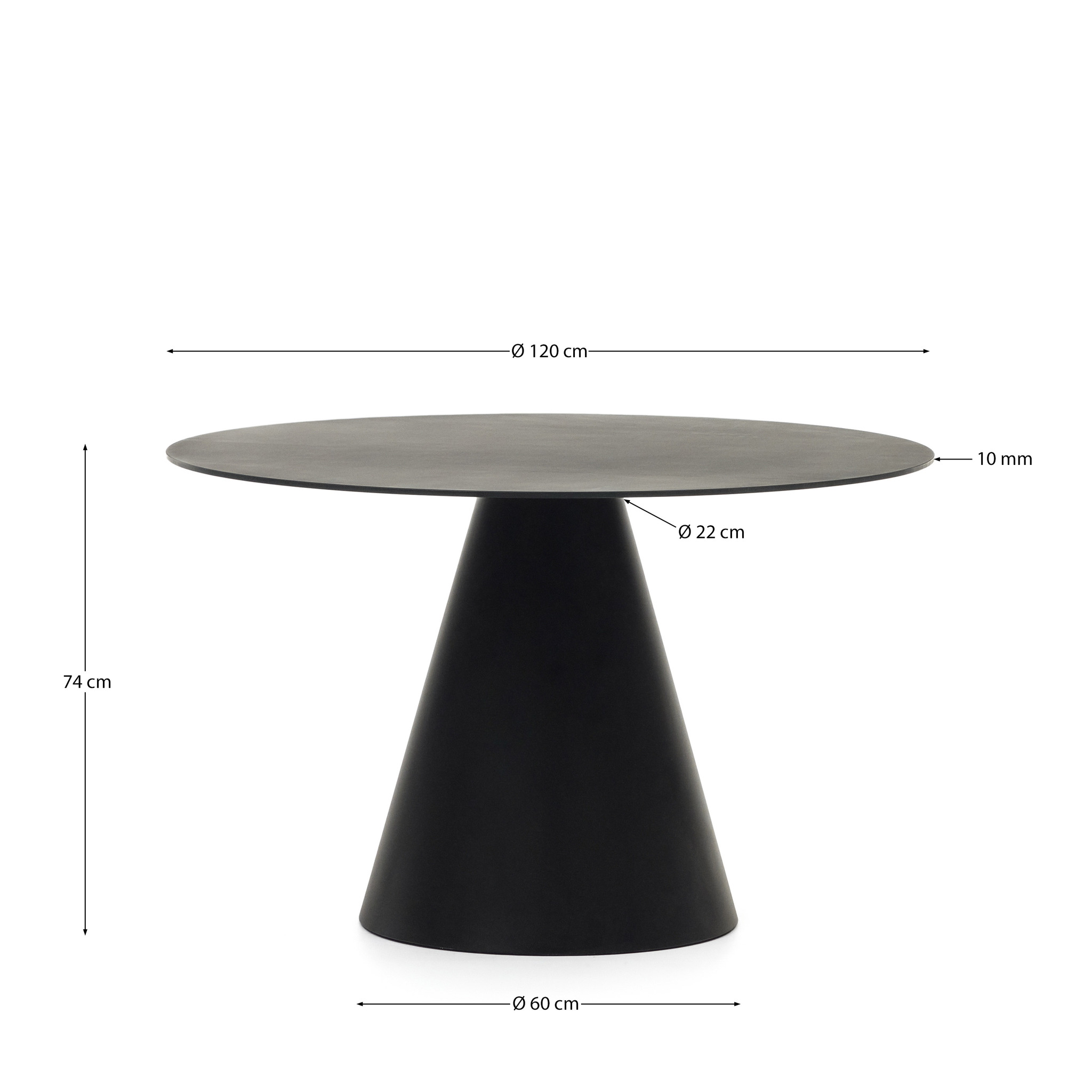 Стол Wilshire от фабрики La Forma (ex Julia Grup) – вид, преображающий пространство. Стол Wilshire легко станет изюминкой для вашей обстановки. Минималистичный дизайн и простые геометрические линии продиктованы последним тенденциям индустриальной эстетики. А матовый черный цвет добавляет яркость. Вместе со столиком Wilshire ваши напитки будут выглядеть стильно, чем когда либо! Столик состоит из круглой столешницы и конусного основания. Столешница выполнена из закаленного стекла толщиной 1 см. Цвет стекла матовый черный. Материал защищен от ударов и высоких температур, обработан по краям от порезов. Основание сделано из стали с черным матовым покрытием. Краска защищает металл от коррозии, иных негативных внешних воздействий. За счет широкого основания, обеспечена устойчивость на любом напольном покрытии. В коллекции представлено три варианта размера стола – с диаметром столешницы 50, 80 и 120 см. В зависимости от габаритов, максимальная нагрузка на стол не должна превышать 20, 20 и 30 кг. Высота столиков: 40/55/74 см. Изделия предназначены только для эксплуатации в помещении. Чистить без использования абразивов и отбеливателей.