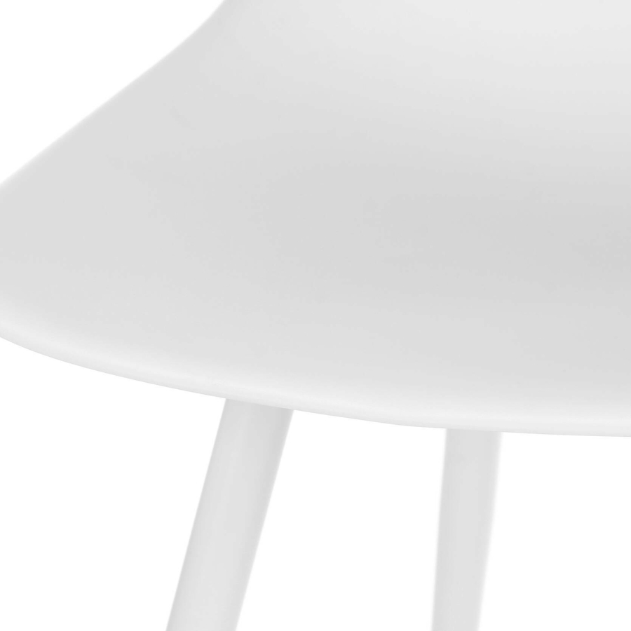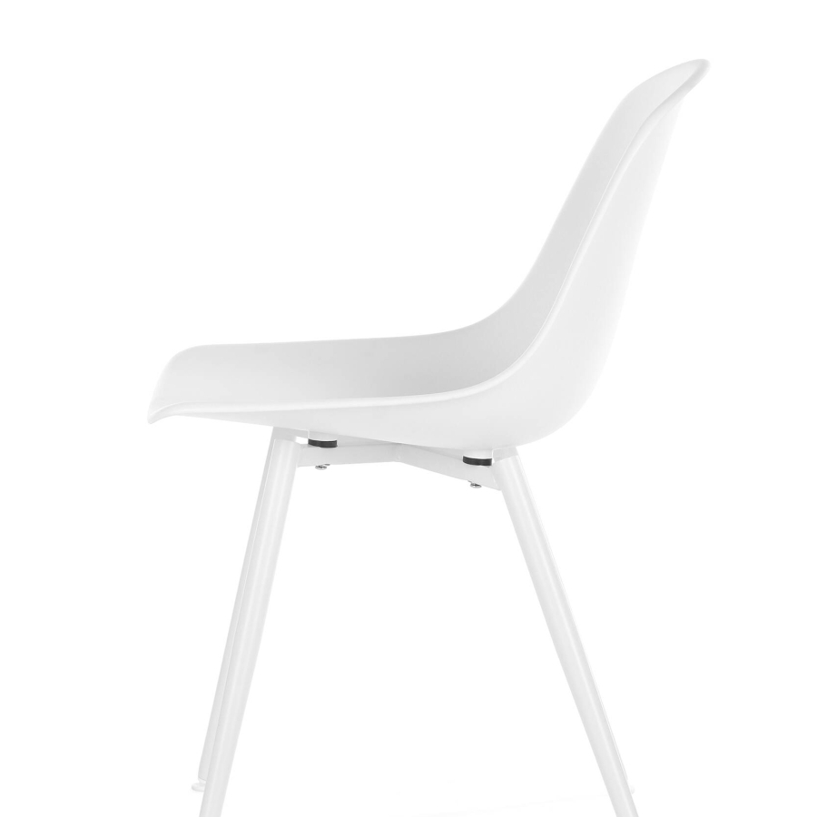 Стул Anat имеет пластиковое сиденье и стальные ножки с белым покрытием.