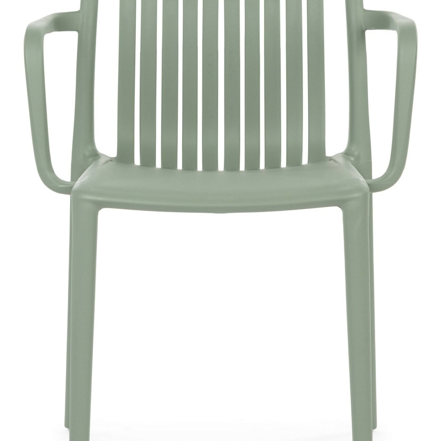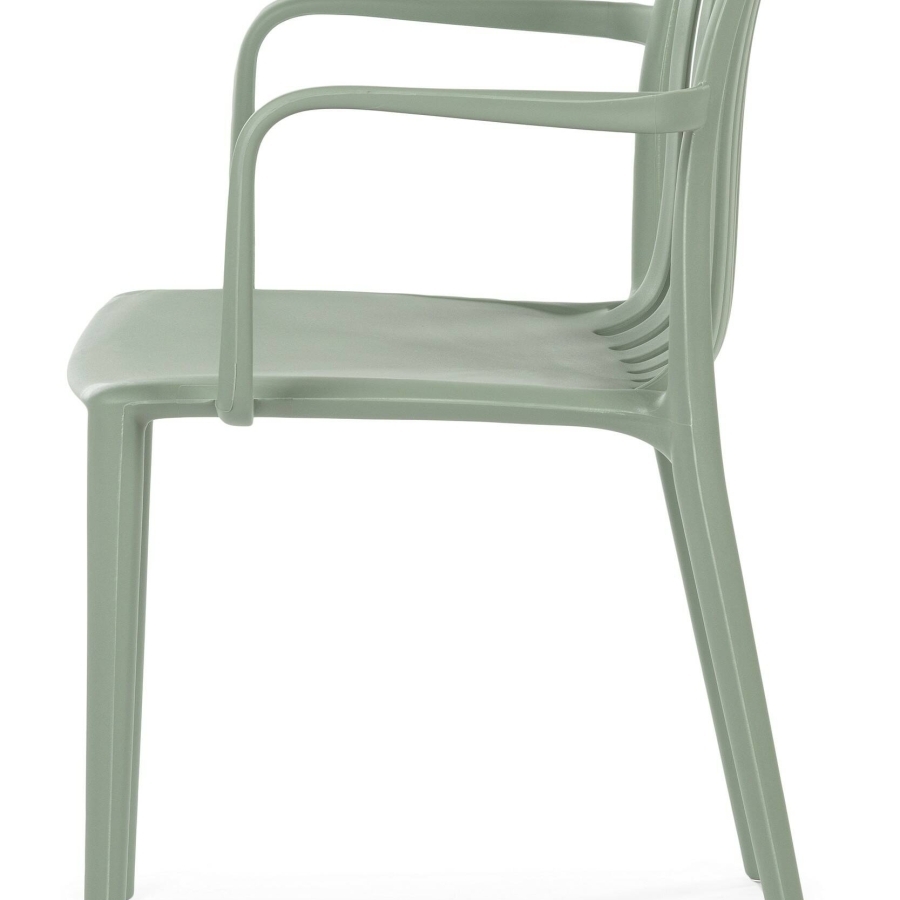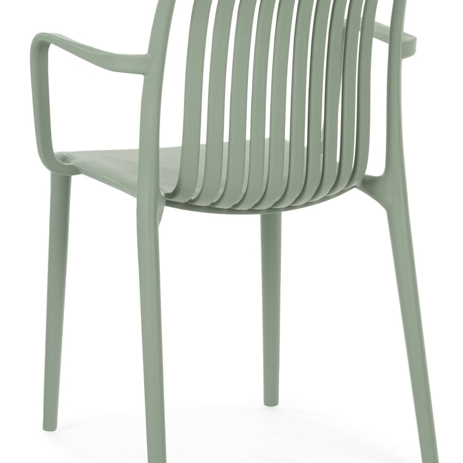 Стул Bande имеет каркас из полипропилена серого цвета и мягкое сиденье зеленого цвета.
