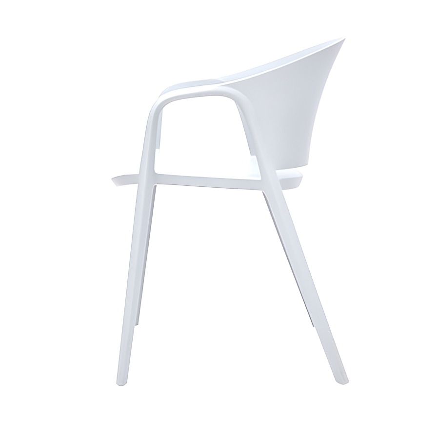 Лаконичный белый стул с каркасом из полипропилена — практичное и универсальное решение для современных интерьеров. Чистые линии и лёгкий визуальный образ делают его отличным выбором для кухни, столовой или общественных пространств.