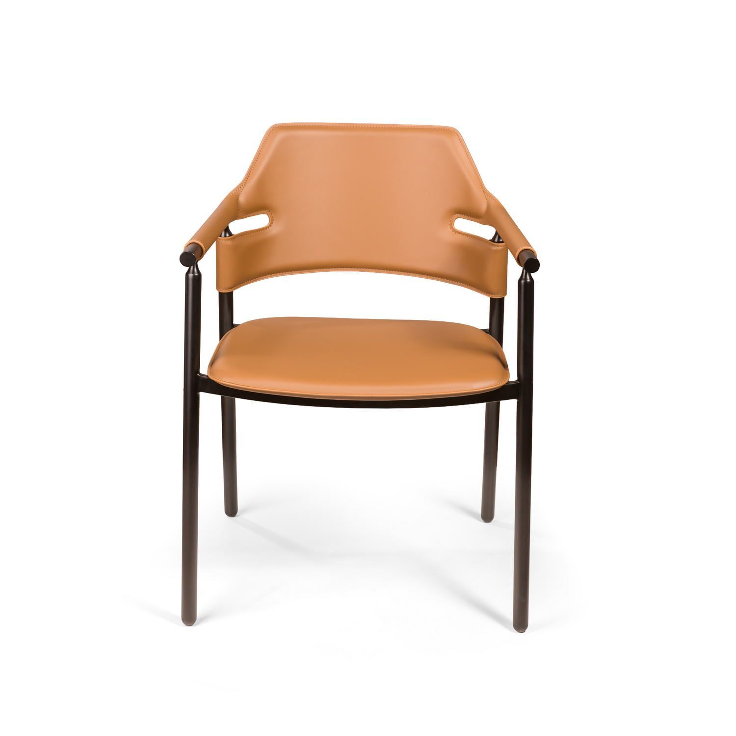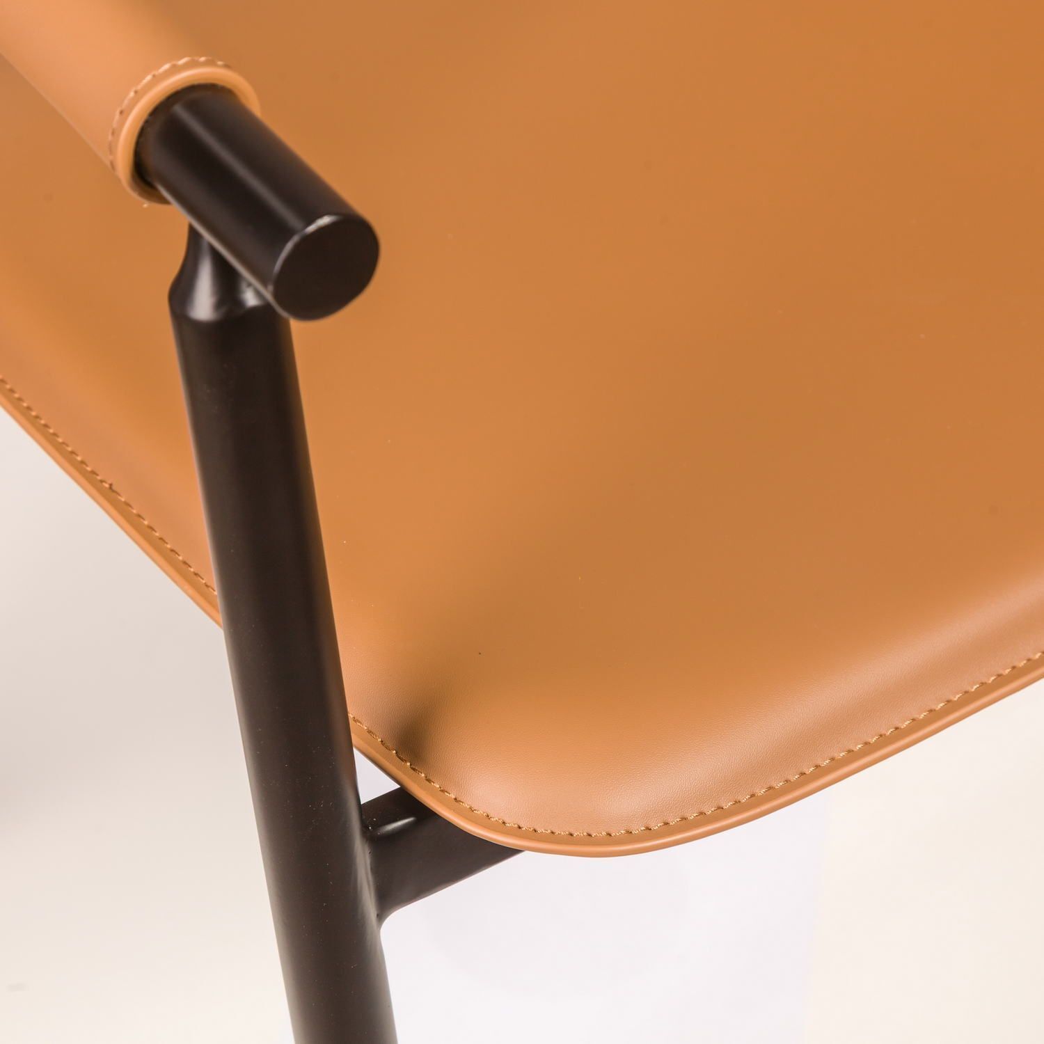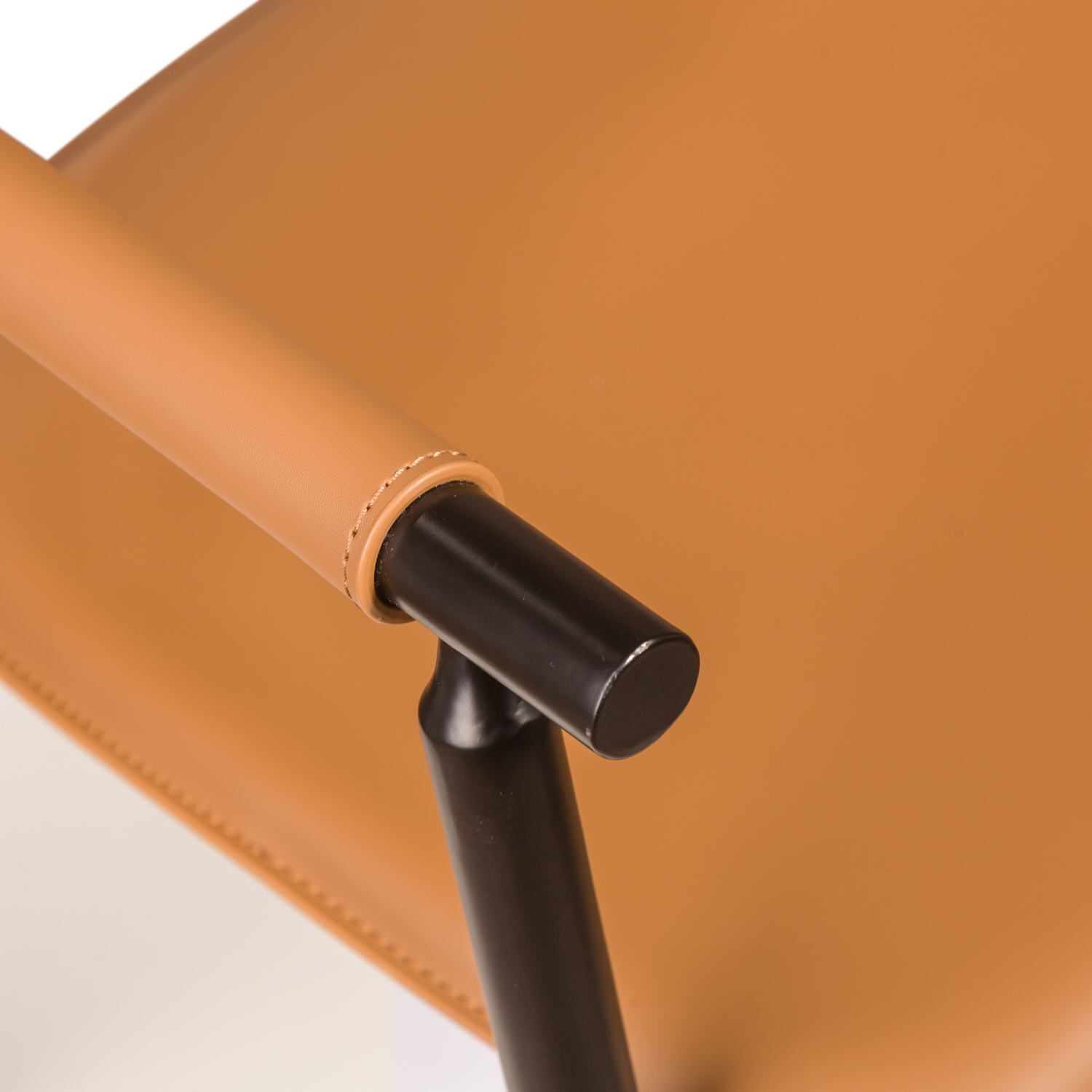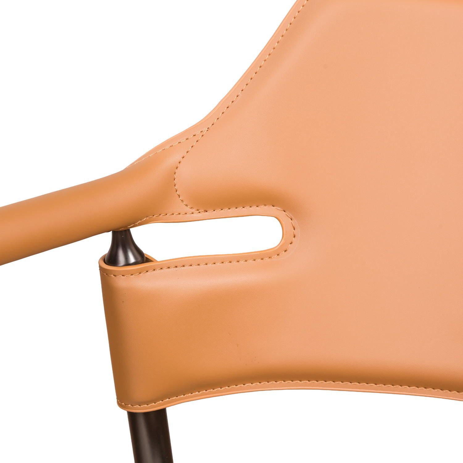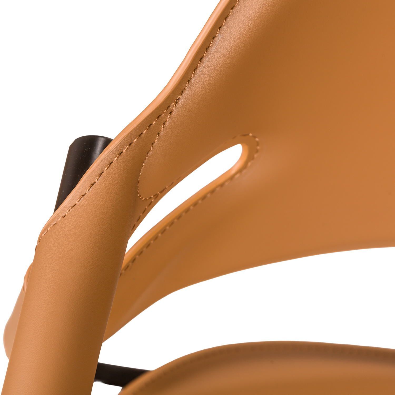 Обивка выполнена из высококачественного PVC-материала — инновационной экокожи, которая отличается долговечностью и устойчивостью к износу. Этот материал сохраняет свой первоначальный вид и не осыпается со временем. Цвет стула — глубокий, насыщенный оттенок оранжевого, который легко сочетается с любым интерьером, добавляя ему изысканности и теплоты.