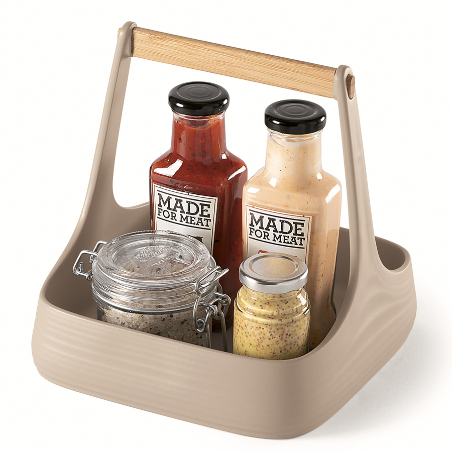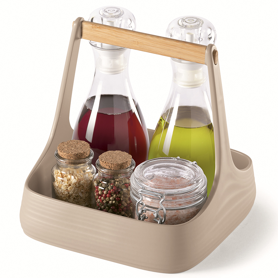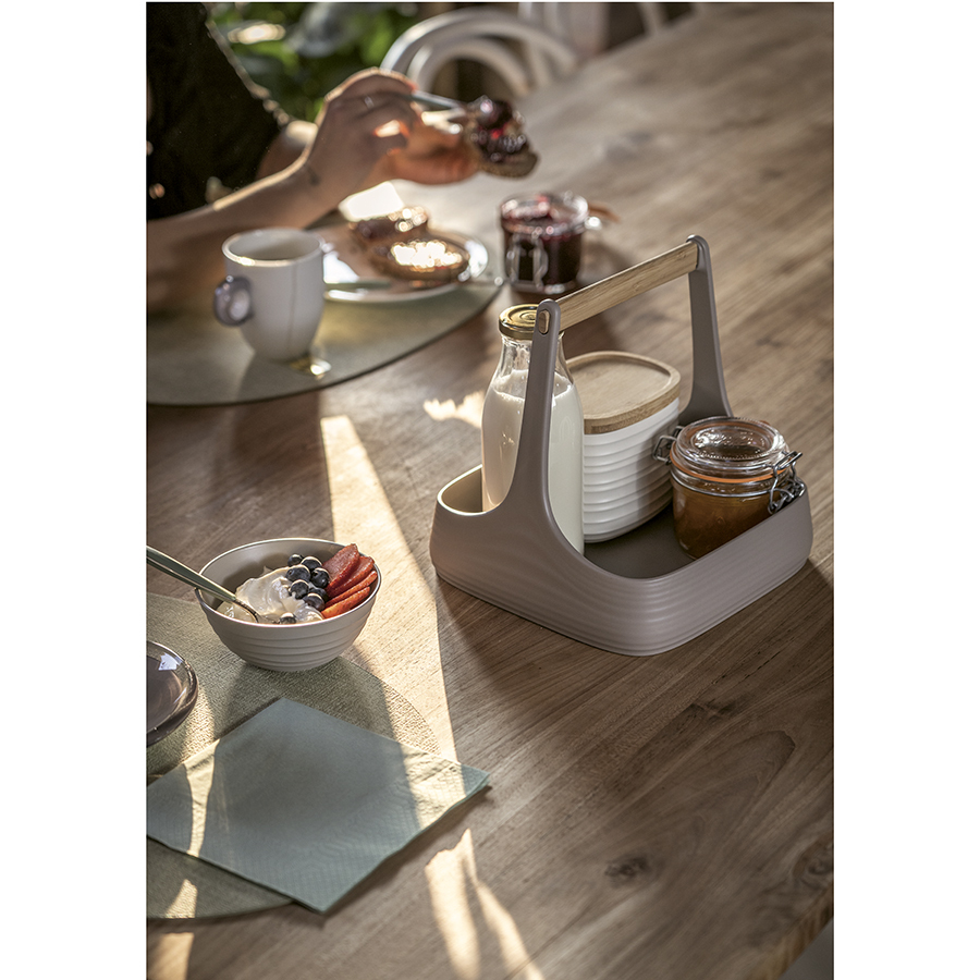 Настольный органайзер станет оригинальным украшением стола. В качестве исходного сырья выступают пластиковые бутылки объемом 1,5 л. Дизайн изделия напоминает керамику. Реалистичности внешнему виду придают тщательно подобранные пастельные цвета и намеренно неровные круговые рисунки, создающие эффект ручной работы. Органайзер отлично гармонирует с другими предметами коллекции Tierra.