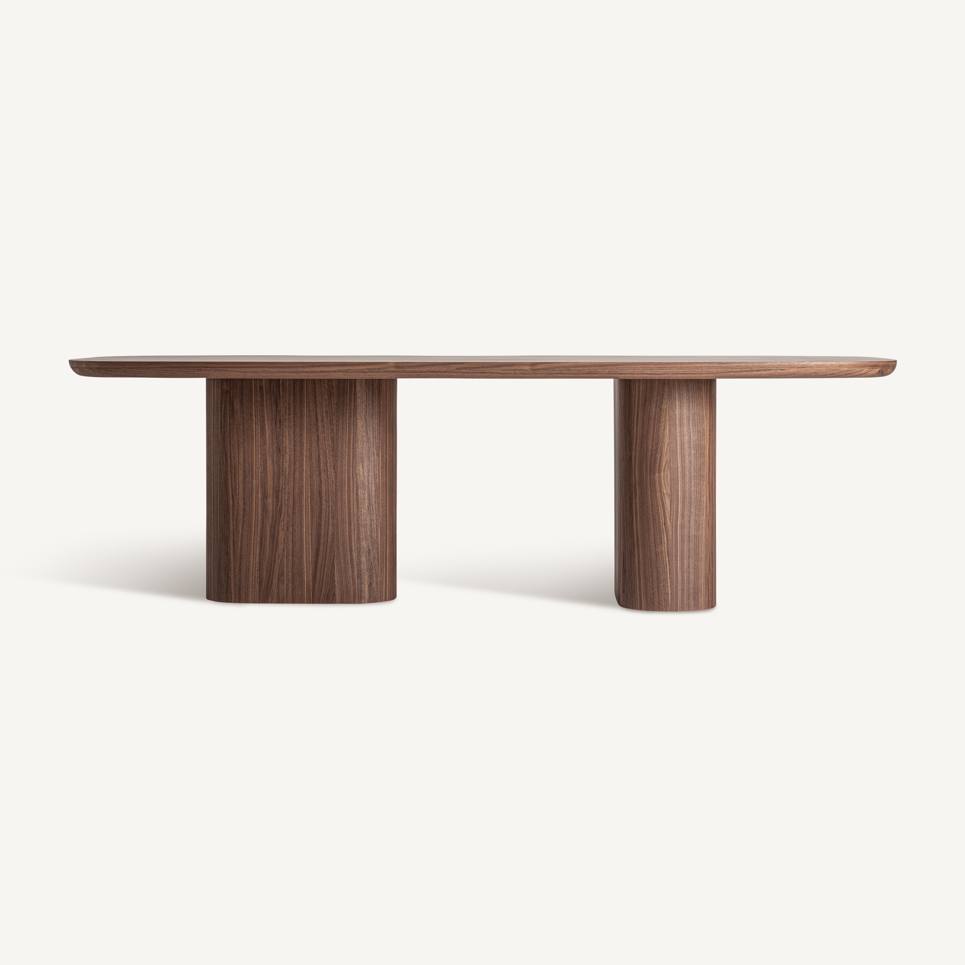 Обеденный стол из коричневого ДМ дерева в сочетании с ореховым шпоном. Ширина: 247 см, Глубина: 110 см, Высота: 76 см