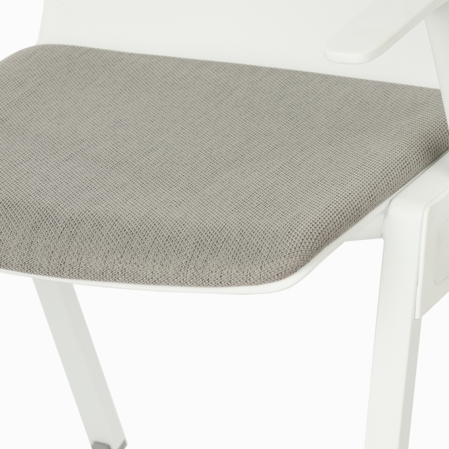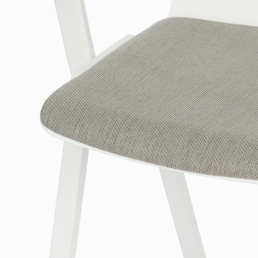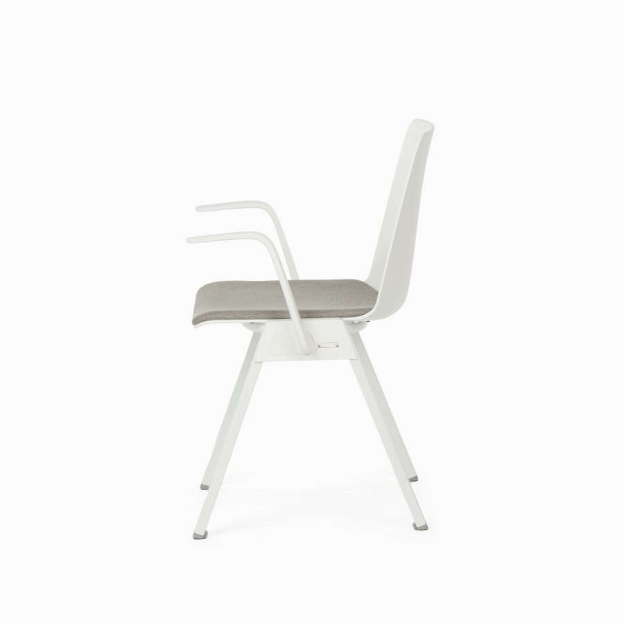 Стул имеет прочный и легкий каркас из полипропилена и стали, окрашенный в белый цвет.