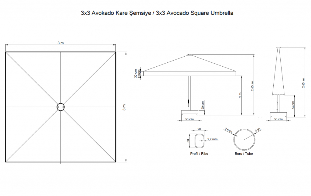 | Тип | Профессиональный уличный зонт с центральной опорой |