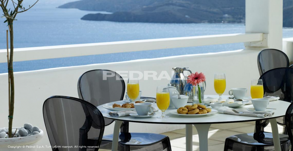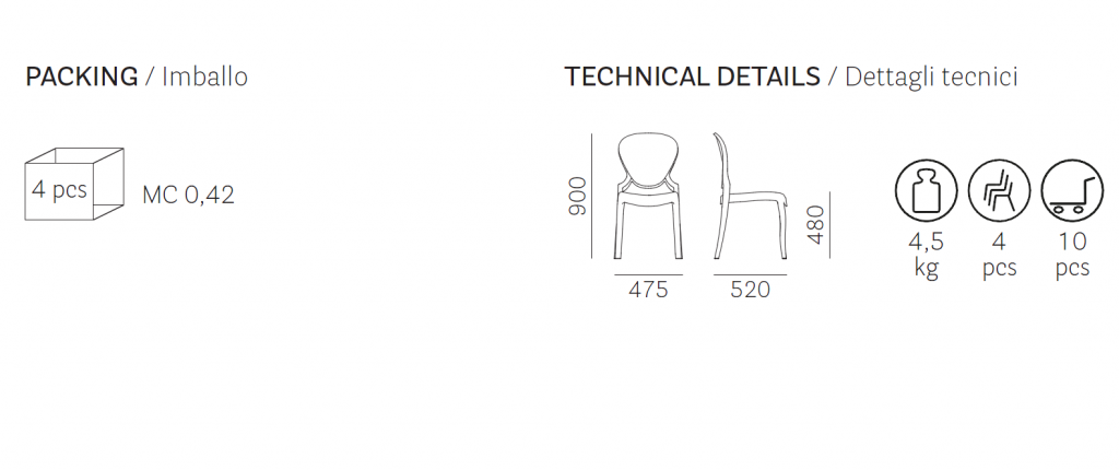 Модель идеально подходит для домашних интерьеров, кафе, ресторанов и коммерческих помещений сегмента Contract, а прозрачная серая отделка создаёт визуальное ощущение лёгкости и расширяет пространство.