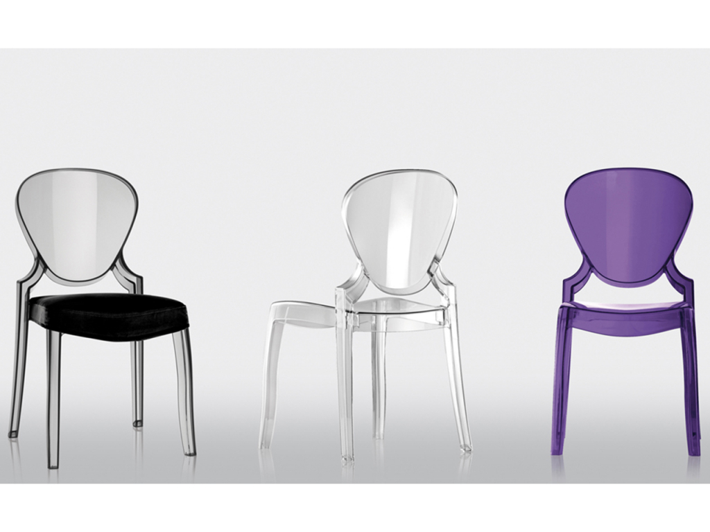Стул Queen прозрачный фиолетовый от итальянского бренда PEDRALI сочетает традиционные формы и современные элементы в дизайне, материалах и технологиях производства. Сиденье и спинка выполнены из литого под давлением поликарбоната, обеспечивающего прочность, лёгкость и долговечность.