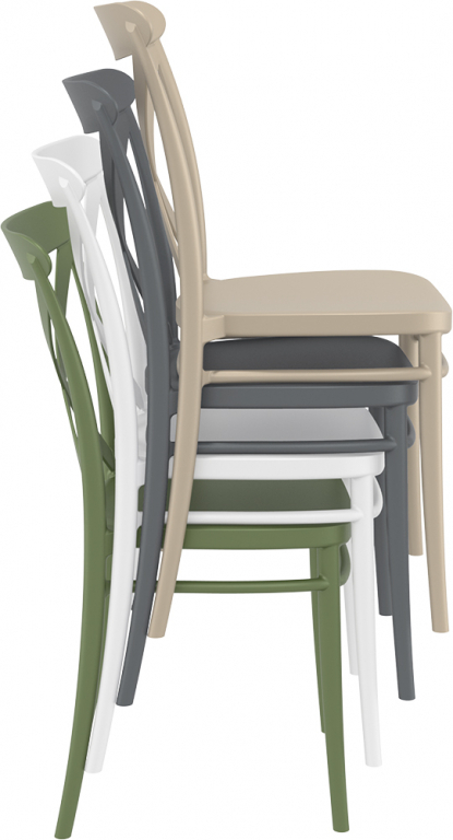 Стул Cross изготавливается из полипропилена, упрочненного стекловолокном, полученным с использованием новейшего поколения технологий формования пластмасс под давлением. Пластиковые стулья серии Cross станут отличным выбором для обстановки фуд-кортов, кафе и ресторанов. Благодаря использованию высококачественных материалов, они долгое время не теряют своего привлекательного внешнего вида, даже несмотря на активную эксплуатацию. Отсутствие металлического каркаса и устойчивость к ультрафиолетовому воздействию обеспечивают использование пластиковых стульев Cross в том числе и на открытых площадках. Особенности: стул имеет символичный своему названию дизайн спинки с крестовиной; изготовлен из высококачественного полипропилена, армированного стекловолокном; не имеет металлического каркаса, не ржавеет, не поддается коррозии; устойчив к ультрафиолету и атмосферным осадкам, выдерживает минусовую температуру до 20 градусов; штабелируемый - занимает минимум места при хранении; подходит для использования на открытом воздухе и в помещении; сертификат CATAS. Открыть технические характеристики.