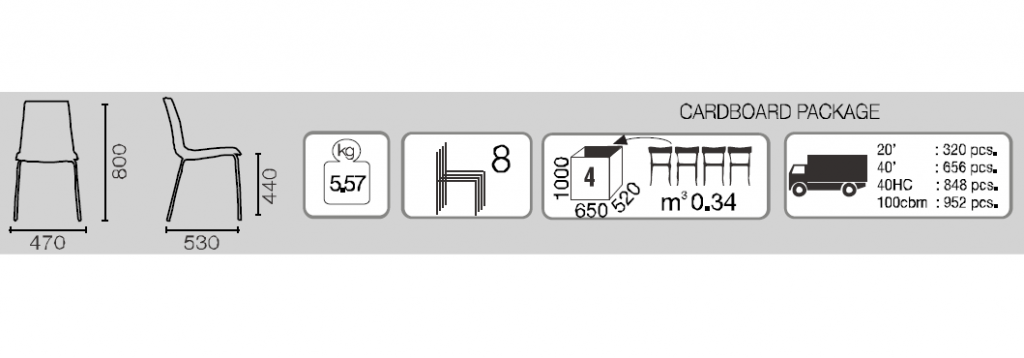 Стул X-Treme S на четырёх металлических ножках может быть изготовлен с глянцевой отделкой корпуса или полупрозрачной. Модель обладающая минималистичной формой, но роскошным внешним видом, станет центром внимания разнообразных помещений. Простота и плавность линий в сочетании с эргономичным сиденьем делает изделие отличным решением для обустройства фуд-кортов, кафе, ресторанов, офисов или залов ожидания. Особенности: Каркас выполнен из хромированной трубчатой стали Ø17 мм (толщина 2 мм). Сиденье и спинка выполнены из устойчивого к УФ-излучениям поликарбоната. Возможные цвета указаны в палитре на сайте. Подробнее ознакомиться с палитрой PAPATYA. Стул предназначен для использования в помещениях, не рекомендуется использовать на открытых пространствах. Открыть технические характеристики. Информация по уходу: прозрачные стулья можно протирать тряпкой из микрофибры, допускается применение нейтрального мыльного раствора. Запрещается использовать спиртосодержащие или ацетоносодержащие (а также им подобные) средства. Для уточнения всех возможных вариантов материала и цвета данного изделия обращайтесь к нашим менеджерам.