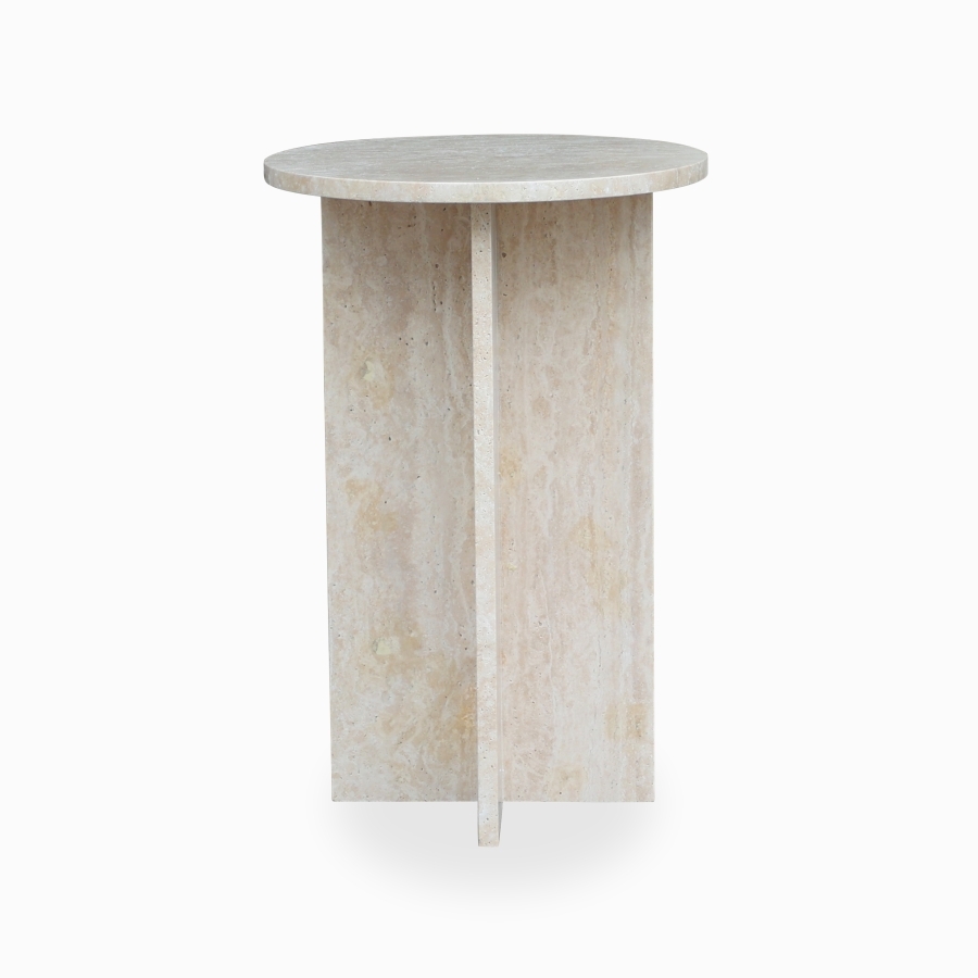 Круглая форма и изысканная текстура мрамора придают столу неповторимый шарм.