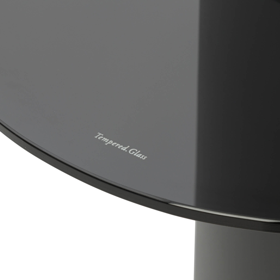 Столешница изготовлена из закаленного стекла серого цвета, что придаёт столу изысканный вид и обеспечивает долговечность.