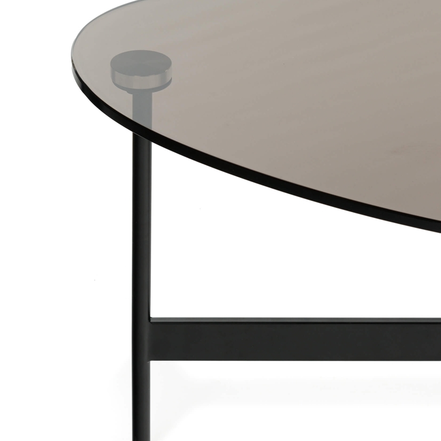 Кофейный стол Raul – это воплощение современного шика. Дымчатая столешница из закаленного стекла добавляет интерьеру воздушности и загадочности, а черные стальные ножки обеспечивают устойчивость и графичность.