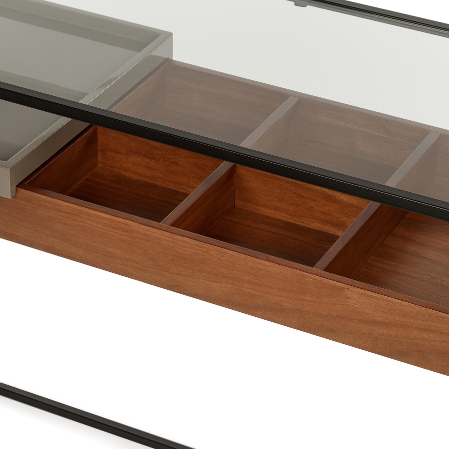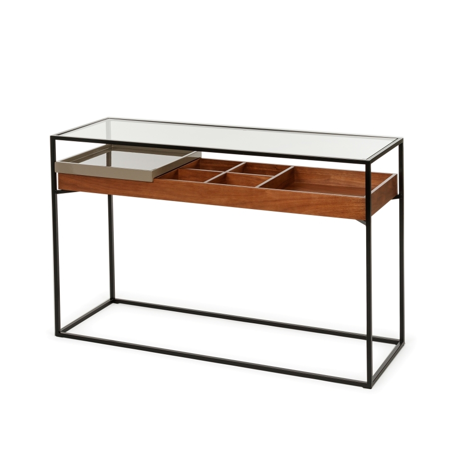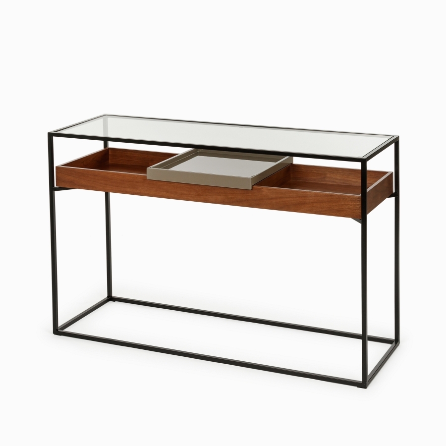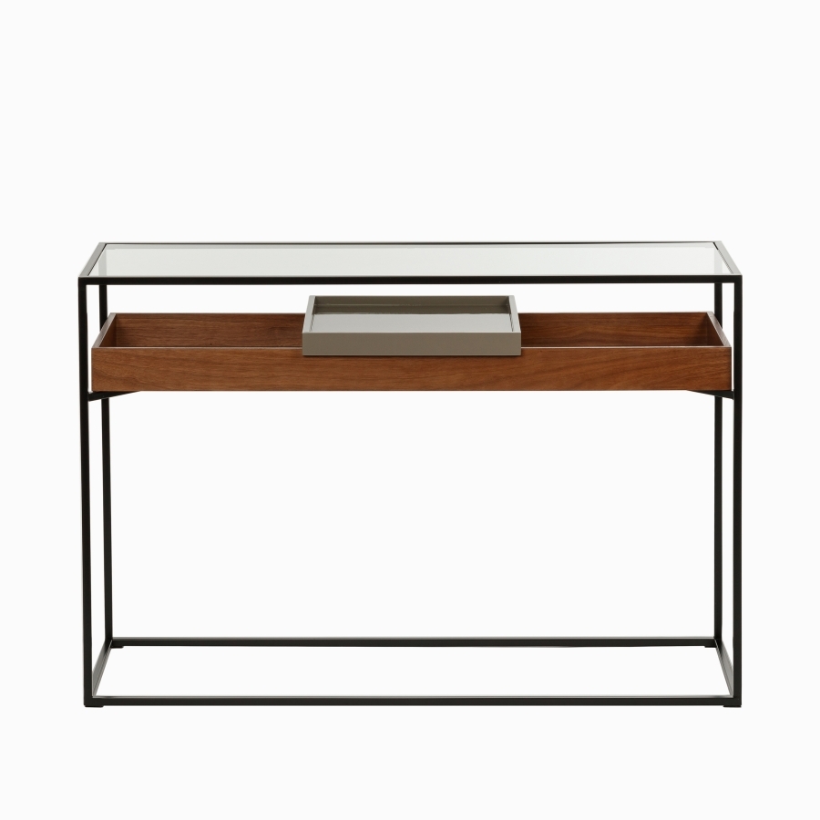 Консоль Sherwood про стиль. Сочетание металла и стекла создает современный и элегантный образ. Полка и ящик предоставляют дополнительное пространство для хранения.