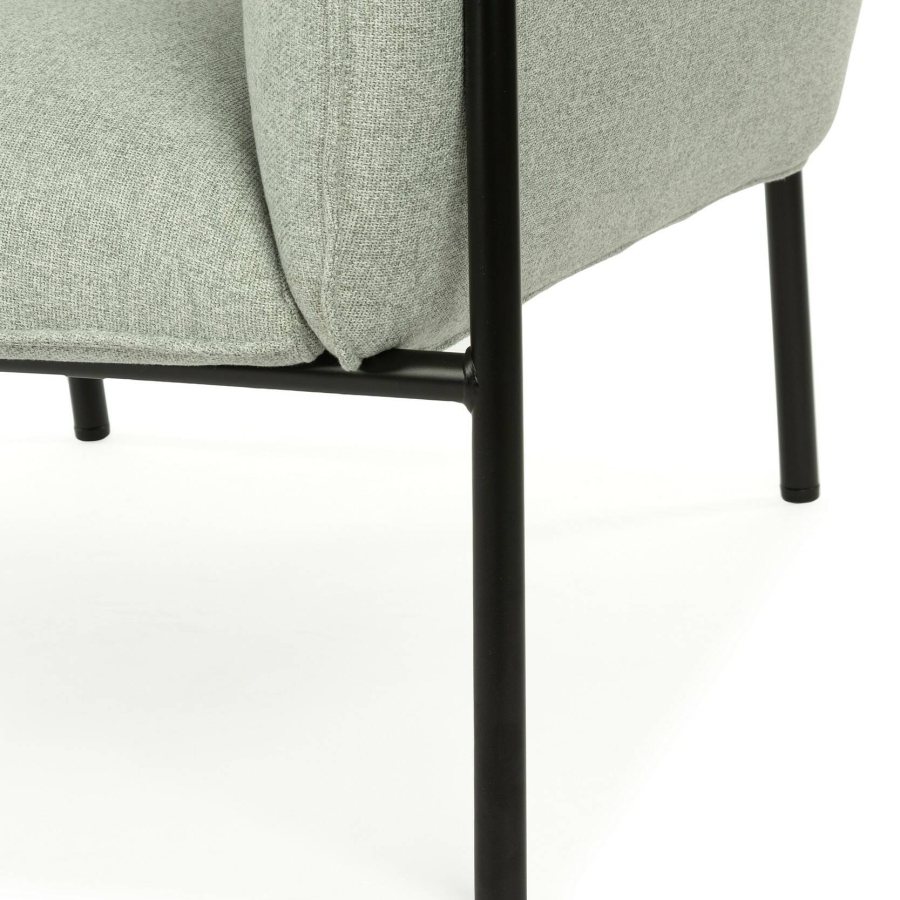 Используется конструкционная сталь квадратного сечения (20х20 мм или 25х25 мм). Ножки и рама покрыты матовым порошковым составом чёрного цвета по технологии Cataphoretic Deposition — такое покрытие устойчиво к царапинам, влаге и истиранию, не отслаивается со временем.