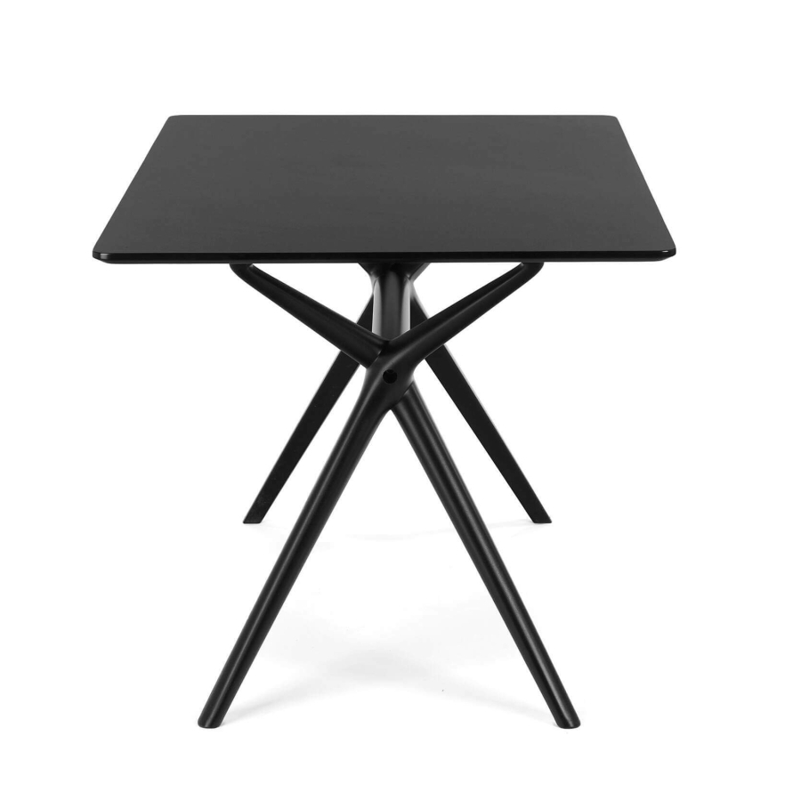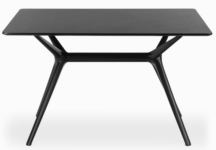 Обеденный стол BB — это лаконичное и бюджетное решение для современного интерьера, сочетающее в себе строгий дизайн и практичную функциональность. Модель с матовой черной столешницей из МДФ и контрастными пластиковыми ножками предлагает чистую эстетику минимализма, идеально подходя для небольших кухонь, студий или обеденных зон в стиле хай-тек и урбанистик.
