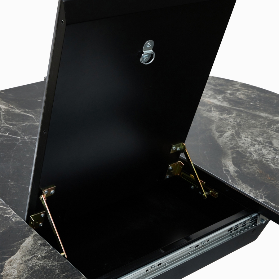 Умная трансформация: Раскладной механизм увеличивает полезную площадь стола, адаптируя его под повседневное использование и праздничные мероприятия.