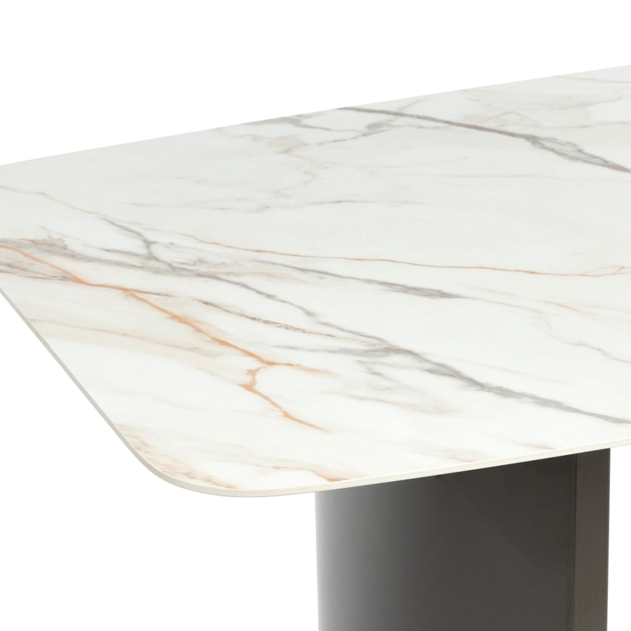 Обеденный стол "Geometry" размером 160x80 см обладает стильным дизайном благодаря своим стальным ножкам и элегантной керамической столешнице. Он станет настоящим украшением вашей кухни или гостиной! За этим столом удобно проводить семейные ужины и дружеские встречи. Стальная конструкция обеспечивает долговечность изделия, а керамика придает ему особую эстетику и легкость ухода.