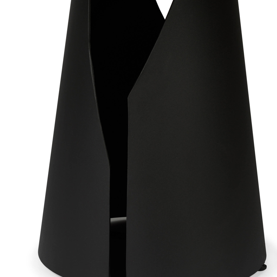 Визуальная лёгкость и скульптурность: Сочетание тонкой глянцевой «тарелки» столешницы и основания с вырезом создаёт иллюзию невесомости. Стол выглядит как интерьерная скульптура, не перегружая пространство даже при насыщенном чёрном цвете.
