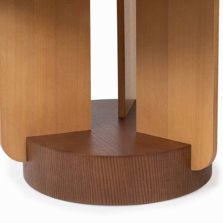 Обеденный стол из коллекции Ollet — это элегантный и функциональный элемент, который идеально вписывается в современный интерьер. Сочетание качественных материалов (дуб, фанера, МДФ) обеспечивает прочность и долговечность конструкции. Натуральный коричневый оттенок и тёплая текстура дерева создают уютную и гостеприимную атмосферу. Этот круглый стол станет отличным местом для семейных ужинов и встреч с друзьями, добавляя стиль и комфорт в вашу обеденную зону.