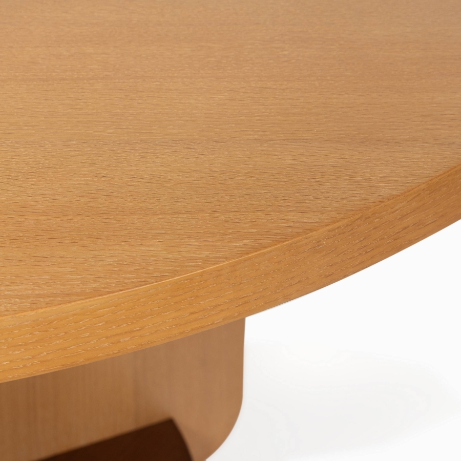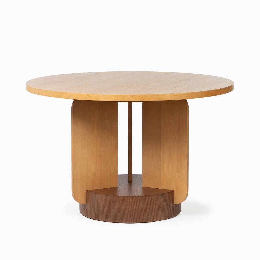 Уютная классика: Круглая форма диаметром 120 см и тёплый коричневый цвет натурального дуба создают атмосферу уюта, гармонии и способствуют непринуждённому общению.