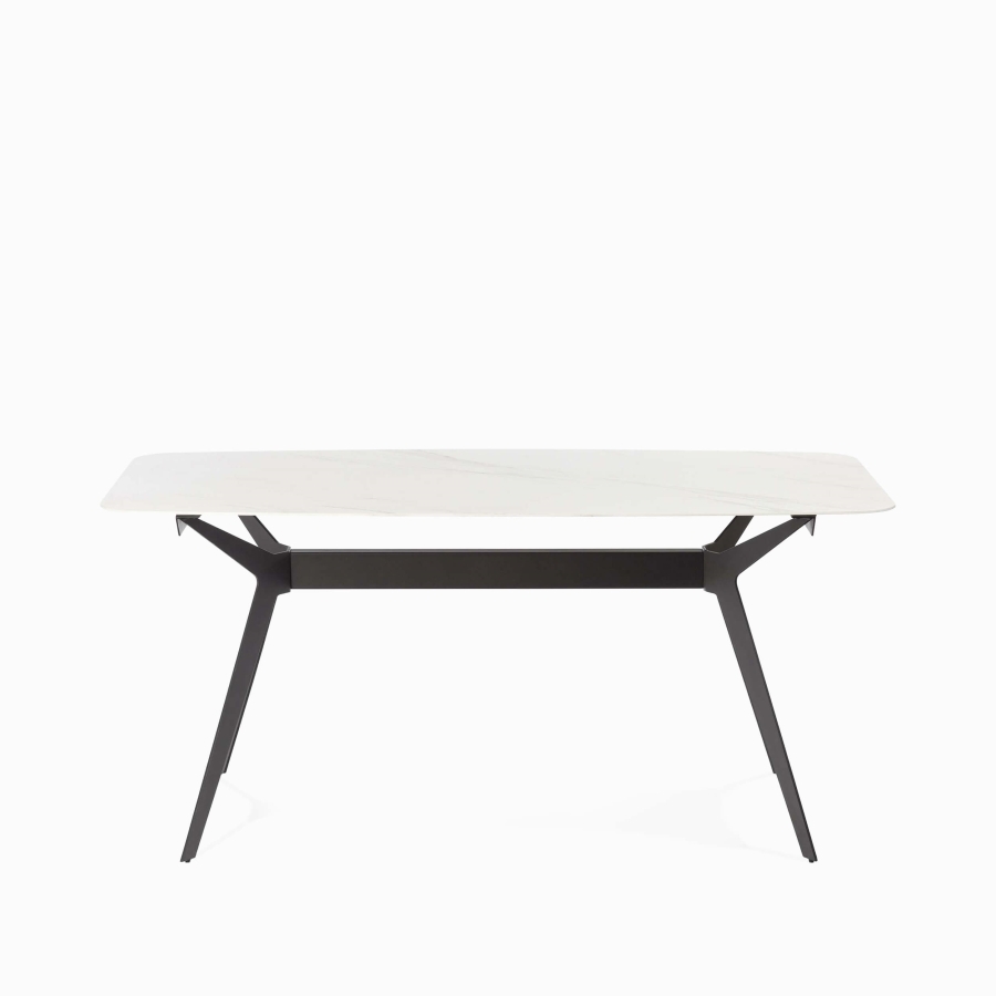 Ей контрастирует нижняя рама — скульптурный элемент в чистом индустриальном стиле. Изготовленная из отборной углеродистой стали и обработанная методом многоканального распыления, она демонстрирует грубую фактурность, надёжность и инженерную честность. Этот союз «неба и земли», утончённости и брутальности, делает Scarlet не просто столом, а арт-объектом, задающим характер всей обеденной зоне.
