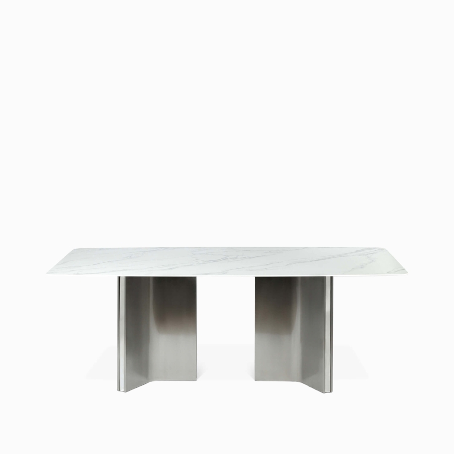 Обеденный стол Selenia — это стильный и практичный акцент для современного интерьера. Его главная особенность — оригинальный дизайн ножек, который превращает функциональный предмет в самостоятельный арт-объект. В сочетании с безупречной белой керамической столешницей стол создаёт ощущение чистоты, света и современной элегантности, идеально подходя для просторных столовых и кухонь-гостиных.