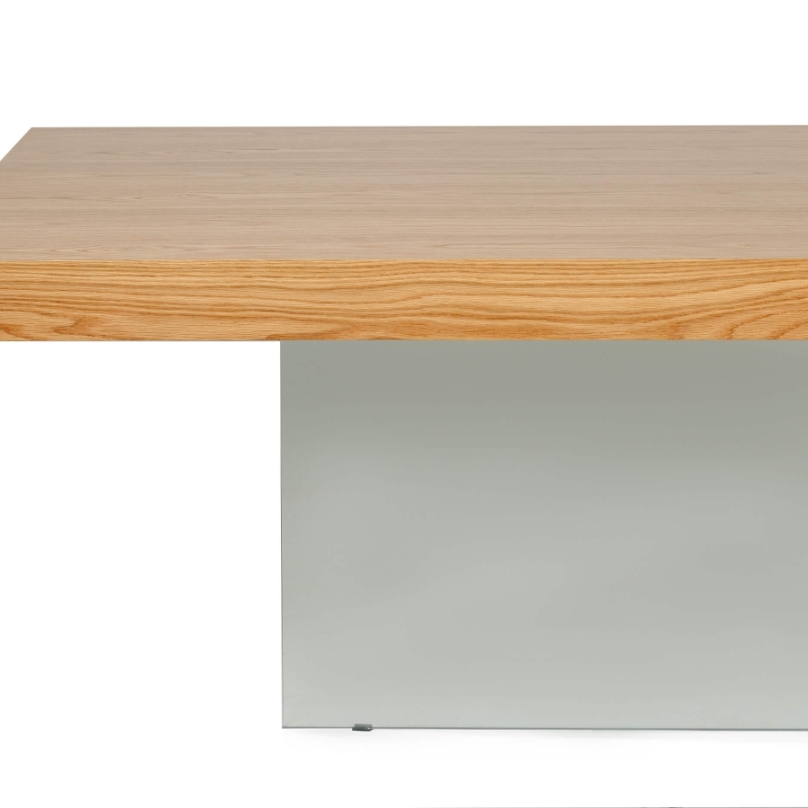 Обеденный стол «Somerset» (200x100 см) — идеальное сочетание стиля и прочности! Стеклянные ножки и дубовый шпон столешницы создают неповторимый дизайн, который подчеркнет ваш вкус и сделает интерьер по-настоящему изысканным. Высокий запас прочности позволяет использовать его ежедневно для уютных семейных обедов либо больших торжеств. Справится даже с самой оживленной компанией!