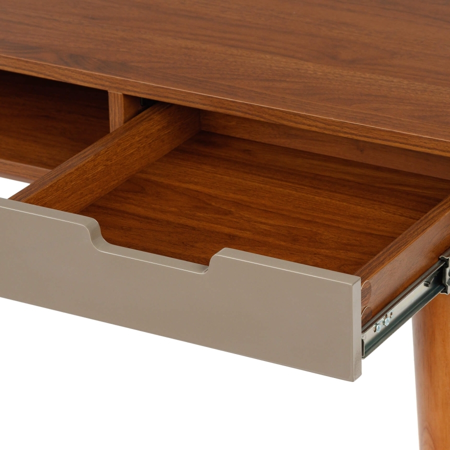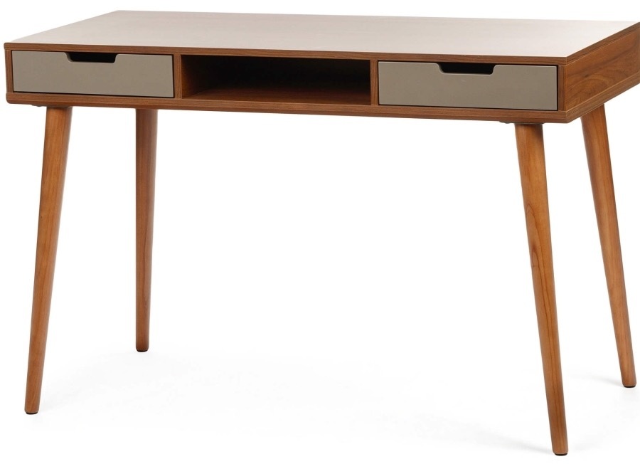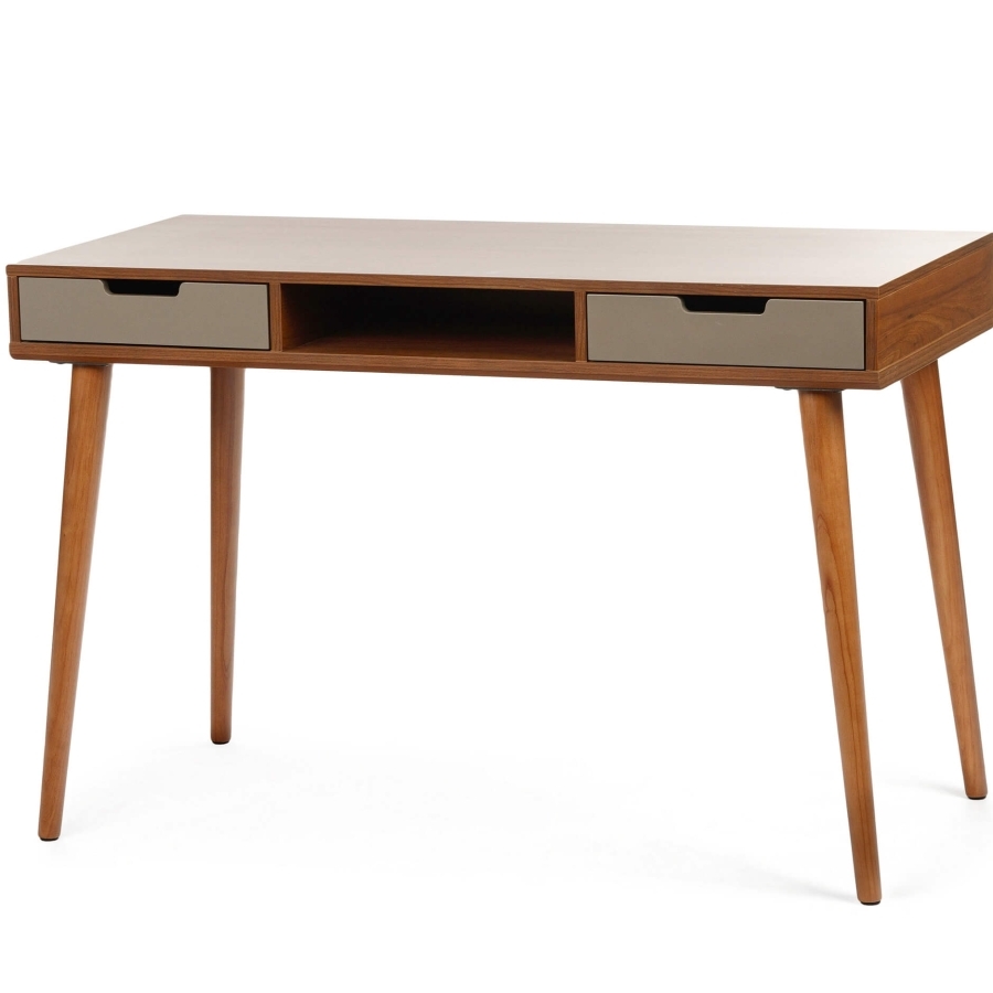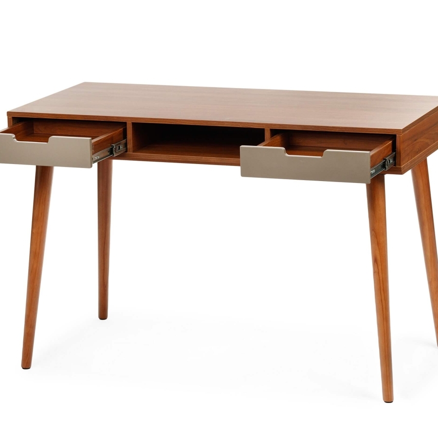 Ножки стола выполнены из натурального дерева, что обеспечивает надежность и устойчивость конструкции. Элегантный дизайн стола Dion с ореховыми элементами и серыми акцентами добавит изысканности и функциональности в ваш рабочий уголок.