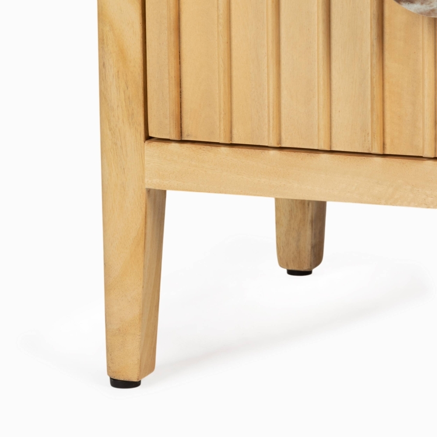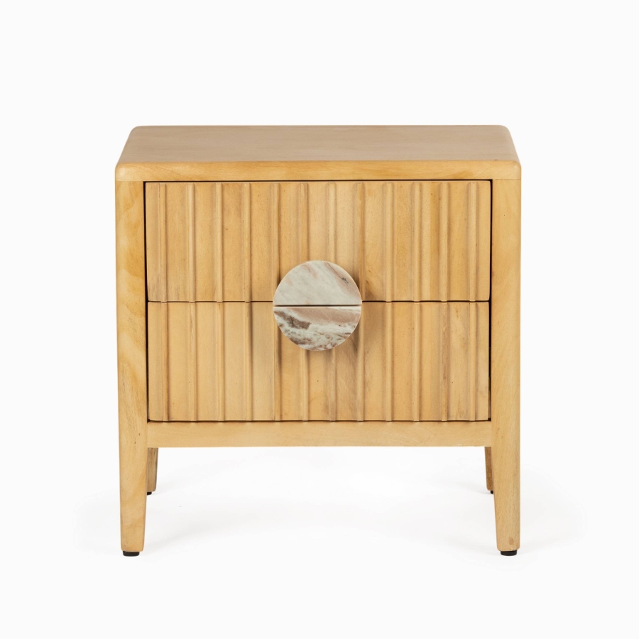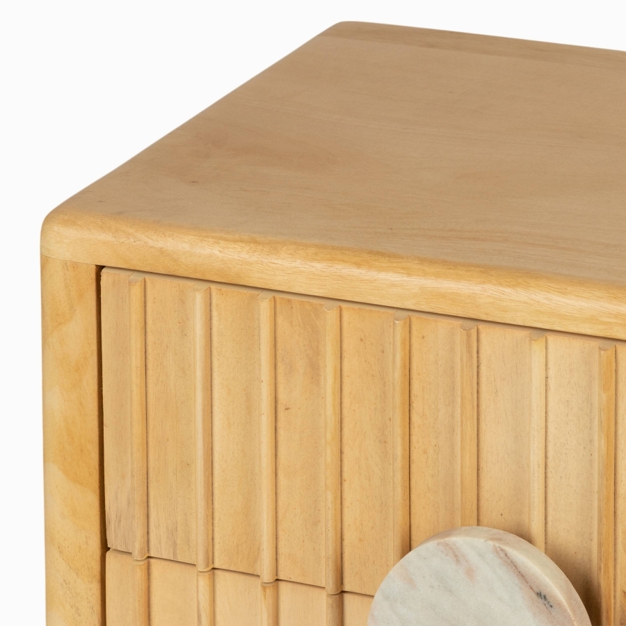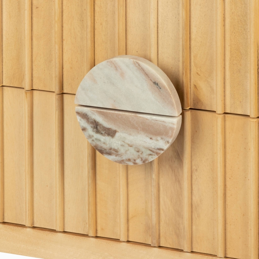 Светло-коричневый каркас тумбы Moonshadow из дерева манго, обрамляющий изысканную мраморную вставку, создает идеальное сочетание природной красоты и современного дизайна. Эта тумба - визуальный акцент, который привлекает внимание и становится центром притяжения в любом интерьере. Мраморная вставка не только подчеркивает роскошь, но и добавляет ей характера. Каждый элемент дизайна продуман до мелочей, что делает эту тумбу идеальным выбором для тех, кто ценит качество и стиль.
