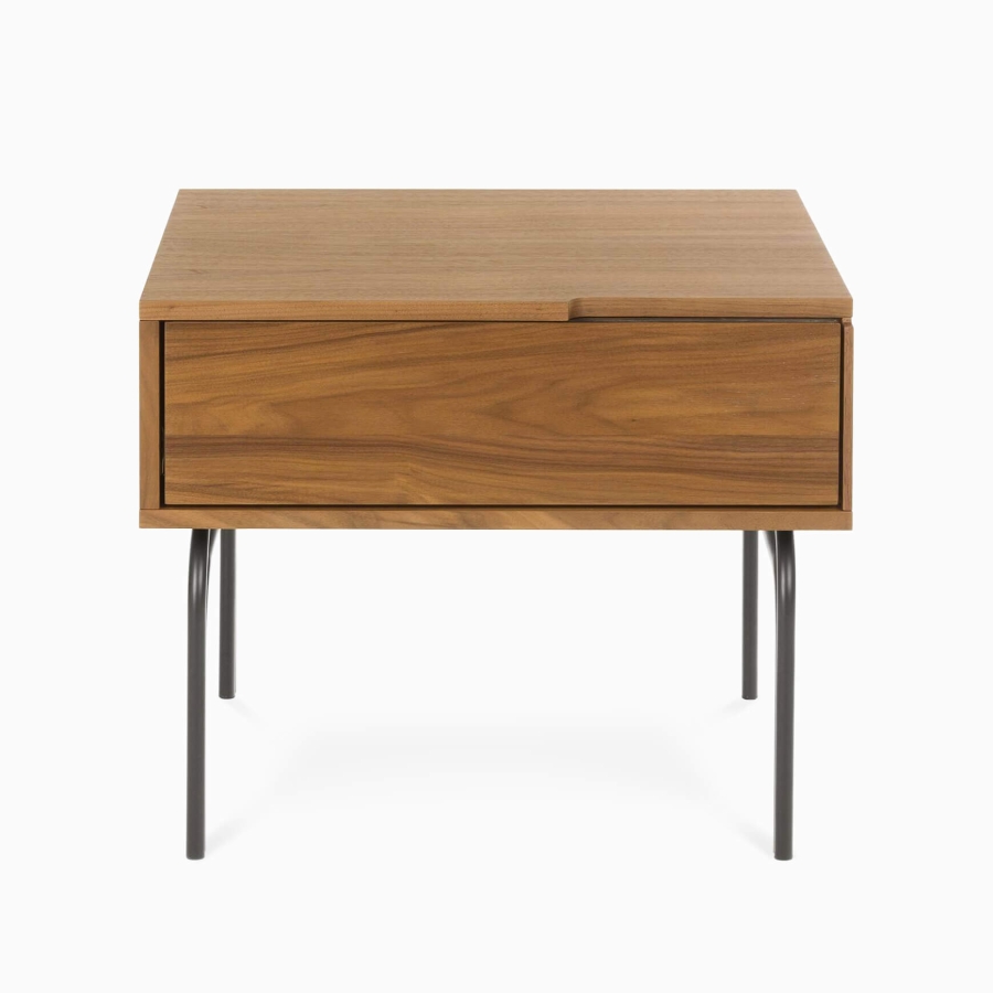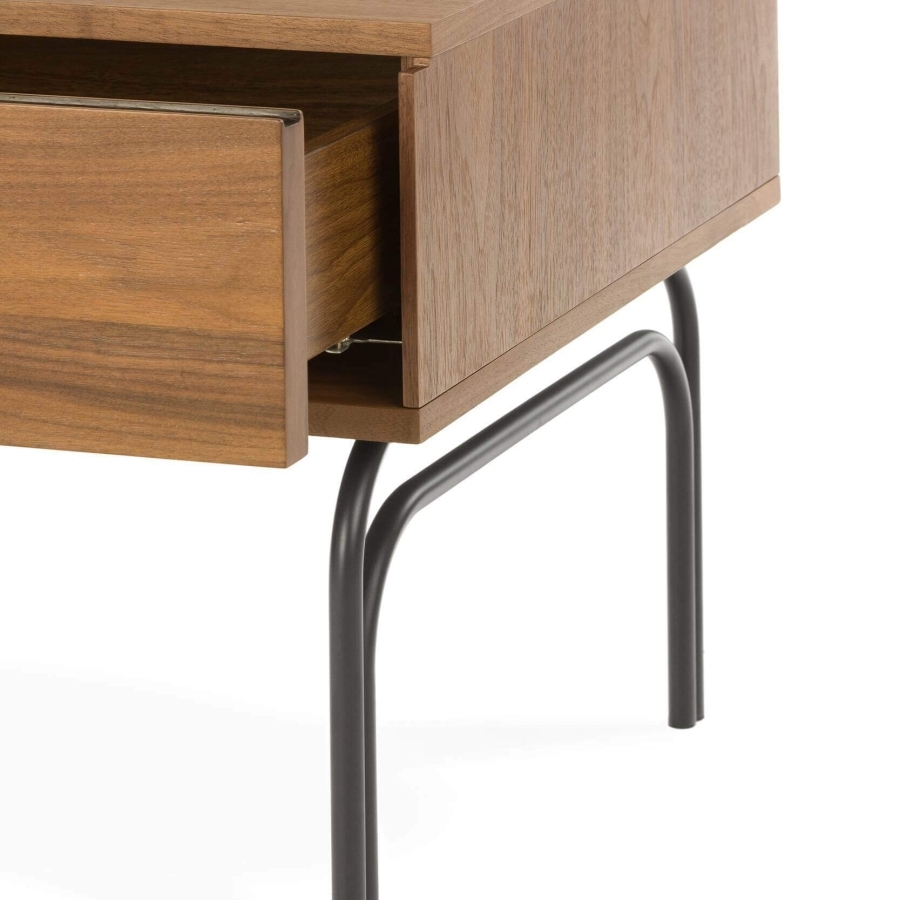 Тумба Tara — это стильный элемент в стиле лофт, который станет идеальным дополнением для современного интерьера. Четкие линии и минималистичный дизайн делают ее универсальным решением для различных пространств. Ореховый цвет каркаса гармонично сочетается с черными металлическими ножками, создавая эффектный ансамбль. Эта тумба станет не просто местом для хранения, а настоящим акцентом вашей спальни.