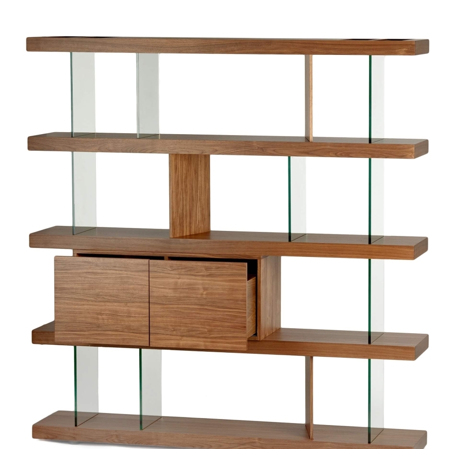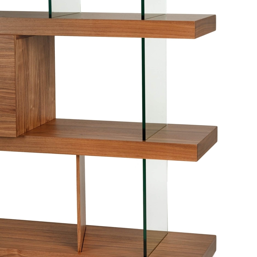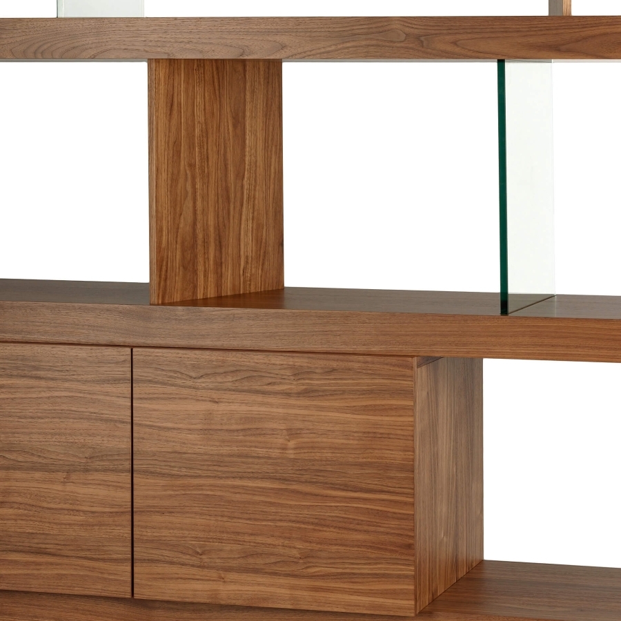 Сочетание прозрачного стеклянного каркаса с элегантными дверями из шпона ореха создает эффект легкости и воздушности.