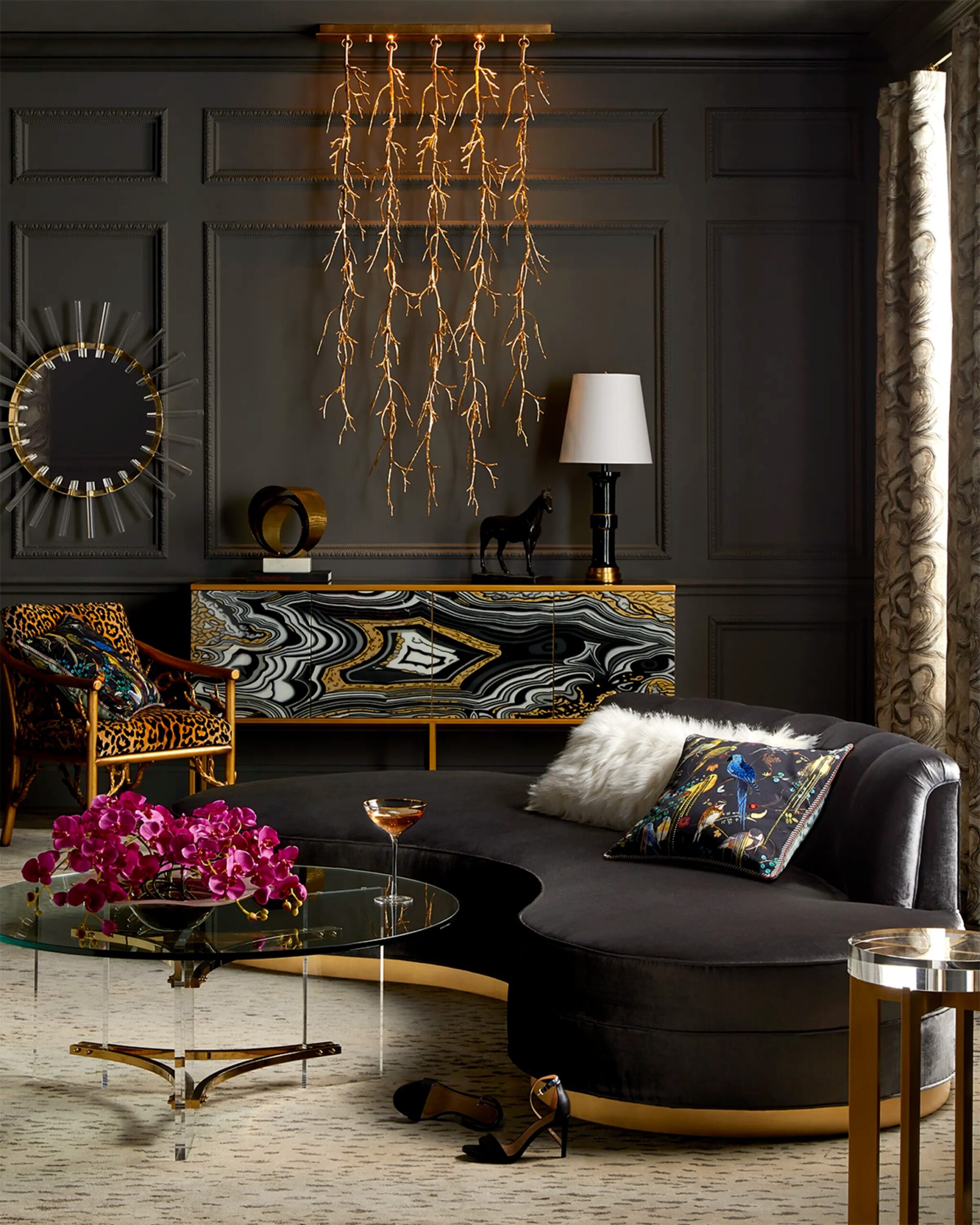 Стол журнальный “Гарнет” — это элегантное и стильное решение для современного интерьера. Его уникальный дизайн сочетает в себе легкость и роскошь, делая его настоящим акцентом в любом пространстве. Круглая столешница из закаленного стекла добавляет изделию изысканности и визуальной легкости, а прямоугольные акриловые ножки создают эффект невесомости, подчеркивая современный стиль столика. Особое внимание привлекают акцентные детали в середине ножек, выполненные в цветовой гамме полированной латуни. Эта отделка добавляет столику утонченности и гармонично сочетается с различными стилями интерьера — от минимализма до ар-деко. Столик “Гарнет” не только красив, но и практичен. Благодаря компактным размерам он легко вписывается в любое пространство: гостиную, спальню, офис.