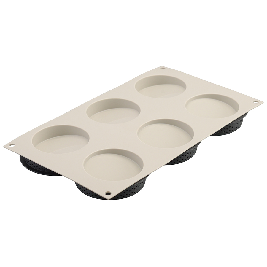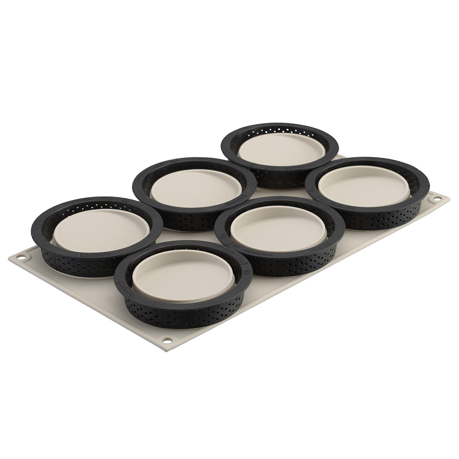 Форма поможет удивить гостей оригинальными домашними пирожными. Набор включает 6 перфорированных пластиковых формочек с антипригарным покрытием для песочной основы и силиконовую форму с шестью секциями для украшения. Форма выдерживает температуру от - 60 до + 230 °С. Силикон не содержит вредный бисфенол-А и соответствует европейским стандартам качества. Он не имеет запаха и не дымится во время готовки. Материал гибкий, прочный, устойчивый к перепадам температур. Форма выдерживает до 3000 использований. Перед использованием необходимо смазать изделие маслом. Размеры пластиковых кругов-держателей (ВхШхГ): 1,8х9,6х9,6 см Размеры силиконовой формы (ВхШхГ): 1,8х17,4х29,9 см Диаметр ячейки - 8 см. Объем ячейки: 46 мл. При чистке не используйте острые предметы. Можно мыть в посудомоечной машине при условии, что не используются агрессивные средства с осветляющим или ароматическим эффектом, это приводит к появлению на форме белых пятен и налета. Контакт с такими продуктами, как кокосовое масло и томаты, приводит к появлению пятен, которые легко устранить, положив форму на час в духовку, разогретую на 200-220 °С. Для удаления жира достаточно прокипятить около 10 минут. Подходит для хранения в холодильнике и использования в микроволновой печи. Производство: Италия