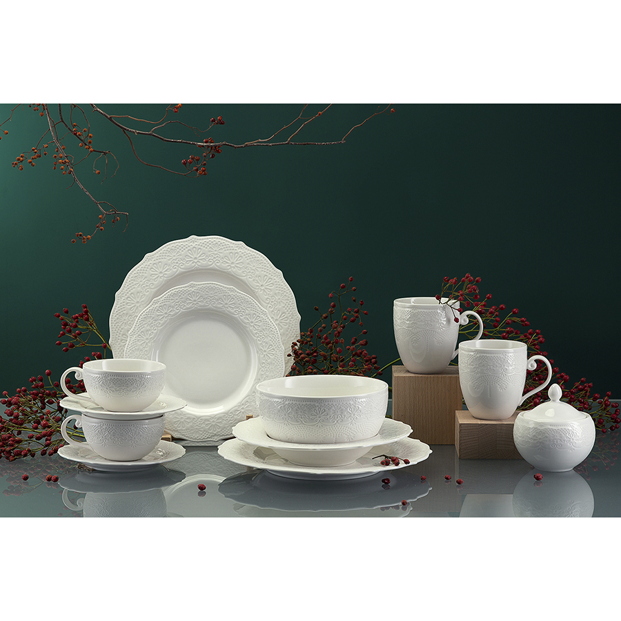 Тарелки Tracery великолепно дополнят коллекцию стильной и практичной посуды. Емкости из белоснежного фарфора с рельефной поверхностью отличаются презентабельным внешним видом. Материал изготовления неприхотлив в уходе, не впитывает загрязнения, является экологичным и безопасным для здоровья. Тарелки идеально подходят для подачи вторых блюд. Их можно использовать как для повседневной, так и для праздничной сервировки стола. Чистое сырье высочайшего качества и собственная формула глазуровки с обжигом при температуре 1250 °C делают изделия из фарфора особо прочными, устойчивыми к растрескиванию и появлению сколов. Глазурь и декор не тускнеют со временем, сохраняя первоначальный цвет и блеск. Наши продукты прошли испытания на отсутствие в составе свинца и кадмия в соответствии со стандартными тестами FDA. Материал: фарфор. Размеры: 26х26х2 см. Количество предметов в наборе: 2 шт. Посуду рекомендуется очищать от загрязнений в теплой воде с помощью мягкой губки с жидким средством. Допускается мытье в посудомоечной машине, использование в морозильной камере, микроволновой печи и духовке при температуре не выше 180 °C.