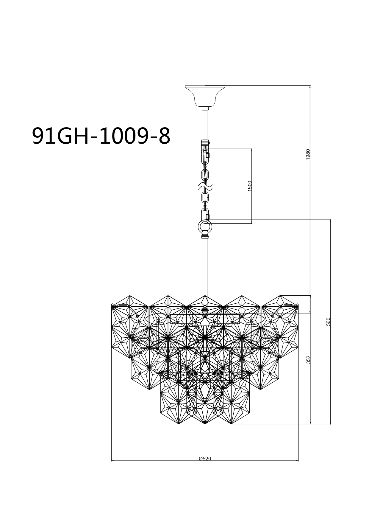 91GH-1009-8 Люстра потолочная TENDER, латунь d.51см h.61см