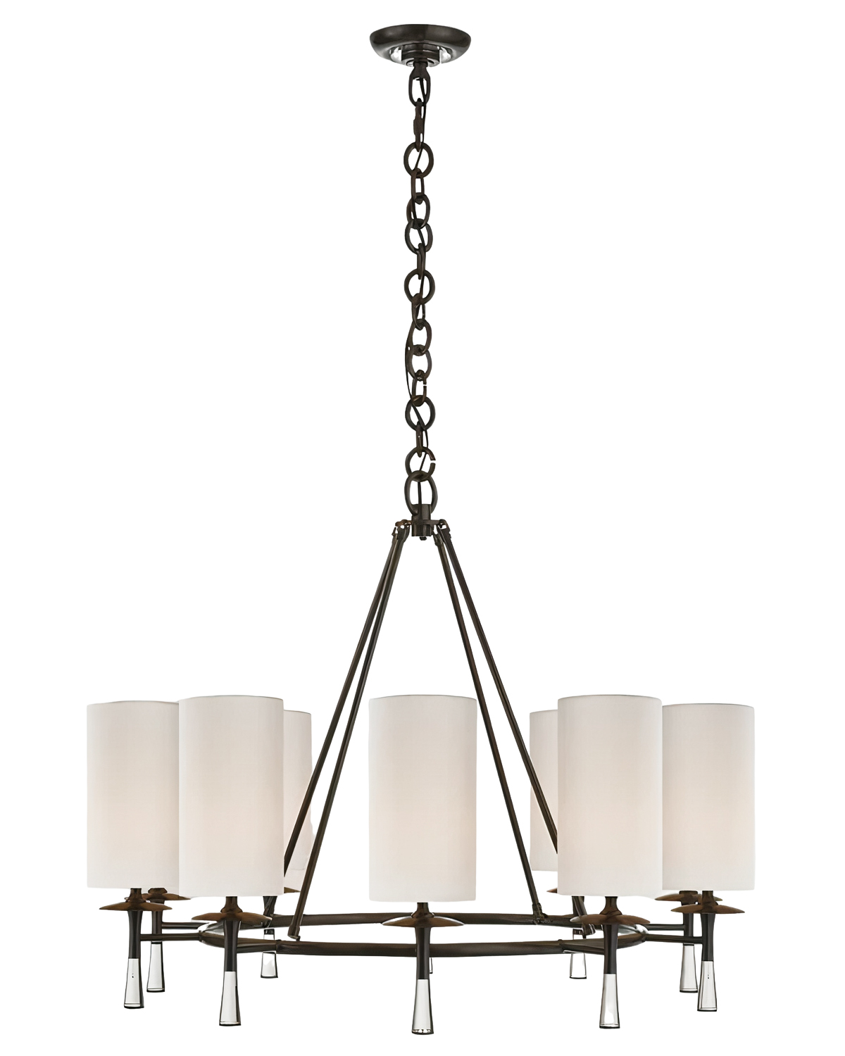 Чёрная люстра “Валенте” – это идеальное решение, которое сочетает в себе классическую элегантность и современный стиль. Эта люстра предлагает свежий взгляд на привычную форму люстры, которая добавит стиля в любой интерьер. Одним из ярких особенностей этой люстры являются высокие белые абажуры, они создают равномерное и мягкое освещение и помогут создать идеальную атмосферу для отдыха и общения. Отделка в черном цвете, будет отлично сочетаться с различными цветовыми решениями в интерьере. Эта люстра будет прекрасно смотреться в гостиной или обеденной зоне, становясь главным акцентом. Люстра “Валенте” также имеет цепочку, которая завершает образ и придает классический вид современному дизайну. Цепочка не только является функциональным элементом, крепящим люстру к потолку, но и вносит свою долю эстетики в общую композицию. Она прекрасно сочетается со множеством интерьерных стилей, будь то классика или современный.