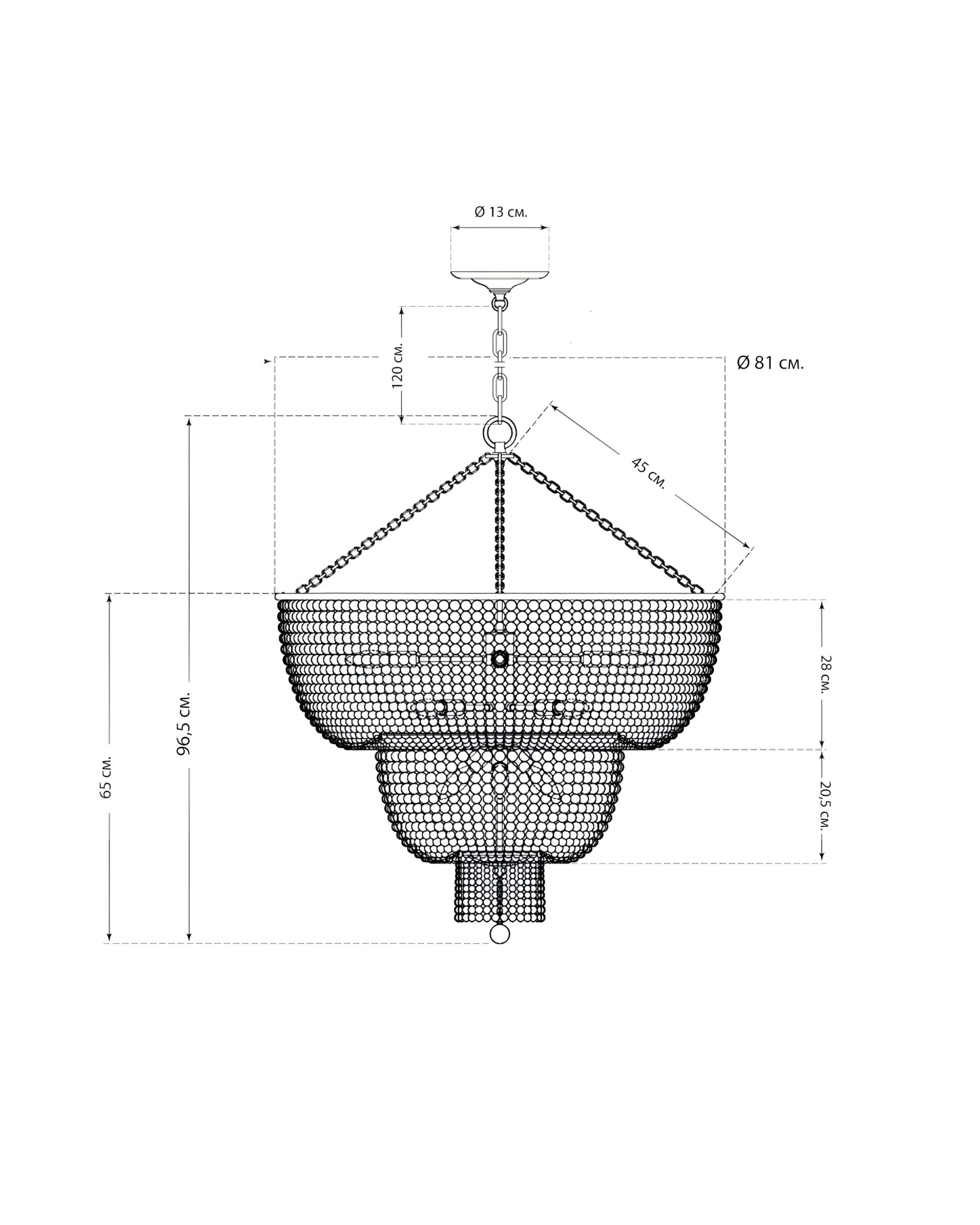 Большая двухуровневая люстра "Бувье", имеет закономерную и жесткую геометрию в стиле "ар-деко", которая дополняется изящными бусинами белого цвета.Длина цепи : 15 см. Длина провода: 25 см. Количество ламп: 13 шт. Тип цоколя: . Мощность лампы: 60W. Общая мощность : 780W