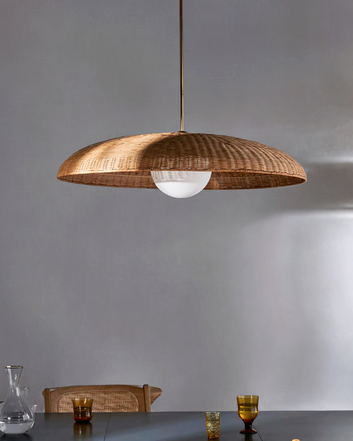 Люстра из ротанга “Мюриэл” – это изысканное сочетание стиля, тепла и уюта, которое станет прекрасным дополнением к интерьеру любого помещения. Уникальный дизайн этой люстры вдохновлен классическими модернистскими профилями 50-х и 60-х годов, что придает ей элегантность и изысканность. Ротанг является прочным и долговечным материалом, который придает “Мюриэл” природную красоту. Золотая фурнитура дополняет и подчеркивает стиль люстры, придавая ей изысканный вид. Белый опаловый стеклянный шар, находящийся в центре люстры, создает мягкое и приятное освещение, рассеивая свет по всему помещению. Люстра идеально впишется в интерьер в стиле “Бохо”, прибрежном или кантри. При свечении лампы внутри стеклянного шара создается мягкий и приятный свет, который подчеркнет уют и комфорт вашего дома.