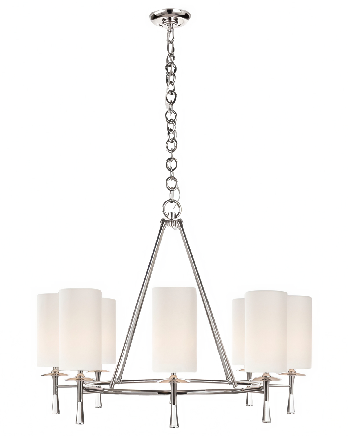 Серебряная люстра “Валенте” – это идеальное решение, которое сочетает в себе классическую элегантность и современный стиль. Эта люстра предлагает свежий взгляд на привычную форму люстры, которая добавит стиля в любой интерьер. Одним из ярких особенностей этой люстры являются высокие белые абажуры, они создают равномерное и мягкое освещение и помогут создать идеальную атмосферу для отдыха и общения. Отделка в цветовой гамме – никель, будет отлично сочетаться с различными цветовыми решениями в интерьере. Эта люстра будет прекрасно смотреться в гостиной или обеденной зоне, становясь главным акцентом. Люстра “Валенте” также имеет цепочку, которая завершает образ и придает классический вид современному дизайну. Цепочка не только является функциональным элементом, крепящим люстру к потолку, но и вносит свою долю эстетики в общую композицию. Она прекрасно сочетается со множеством интерьерных стилей, будь то классика или современный.