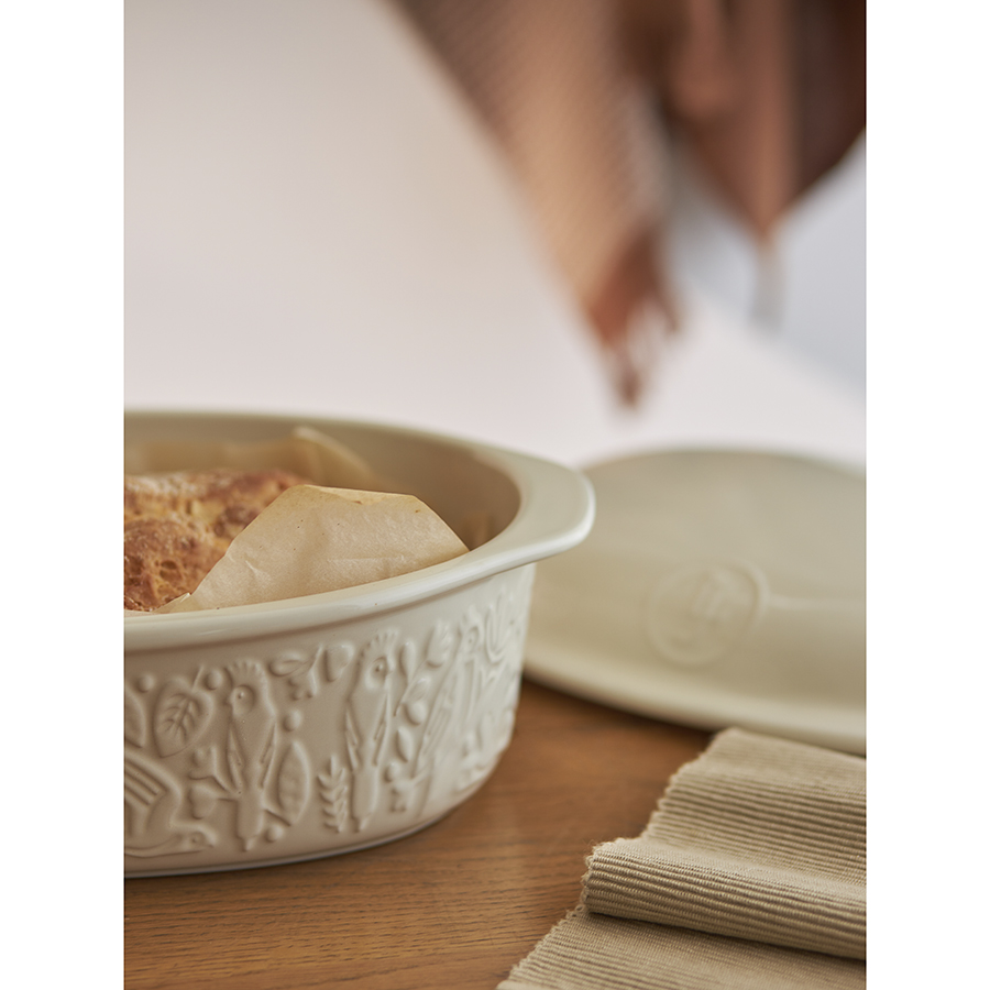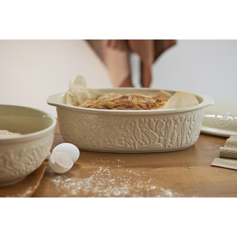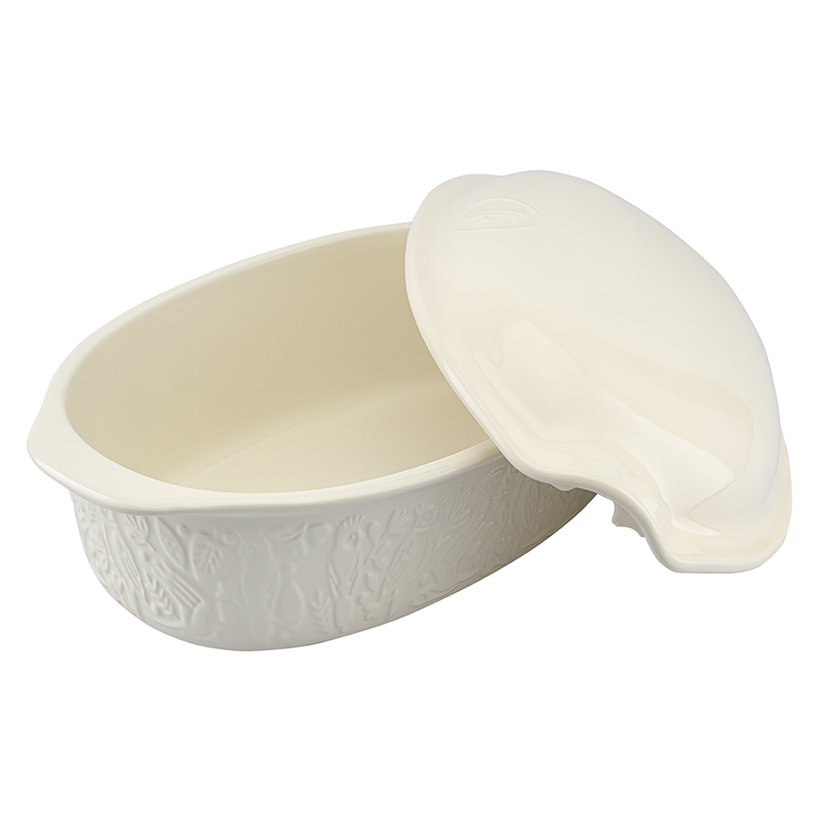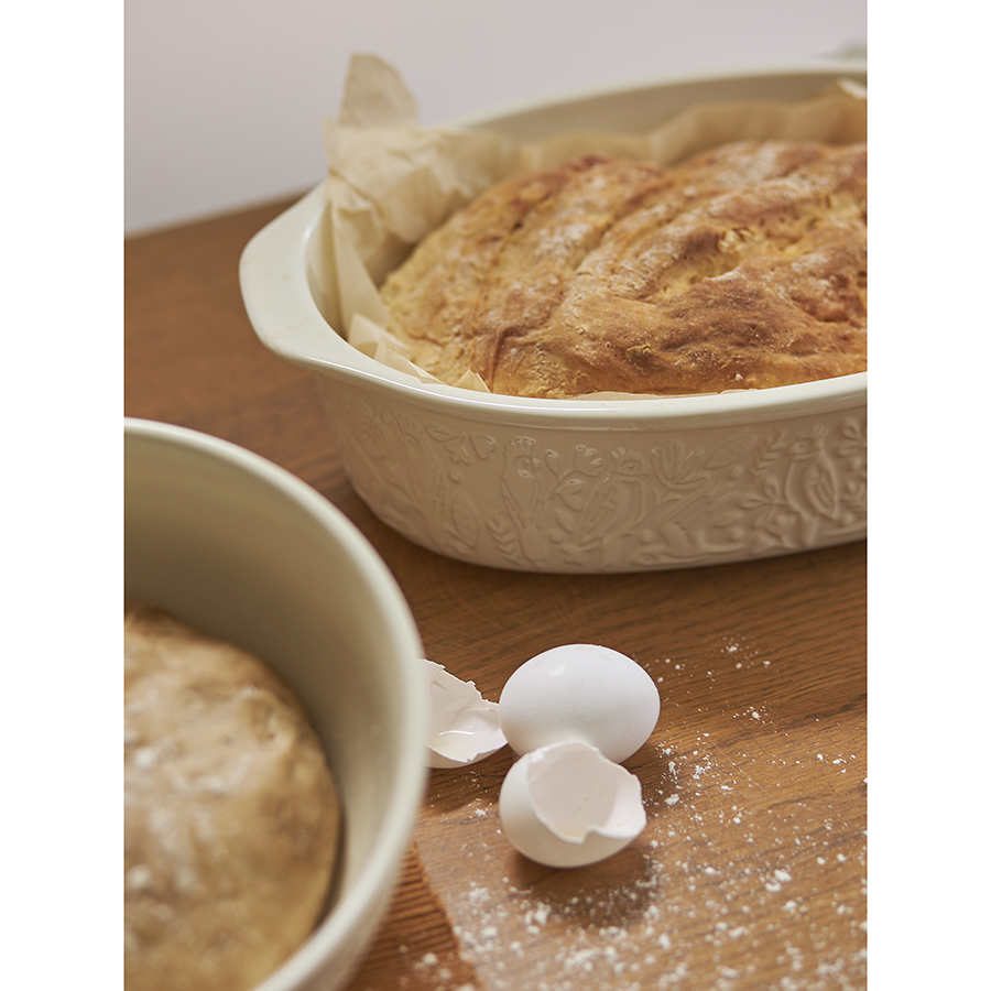 Форма для выпечки из коллекции Birds of Paradise – качественная посуда из экологичной каменной керамики, которая поможет легко приготовить вкусный и ароматный хлеб в домашних условиях. Особенности и преимущества: - Изготовленная из каменной керамики форма равномерно прогревается и создает условия для идеального пропекания теста. - Благодаря высокой прочности и устойчивости материала к износу изделие не теряет привлекательный внешний вид на протяжении всего срока службы. - Покрытие глазурью упрощает уход, обеспечивает декоративность и дополнительную защиту от внешних воздействий. - Отличительной особенностью серии является объемный узор природной тематики, добавляющий дизайну элегантные нотки. - Форма идеально подходит для выпекания как белого, так и черного хлеба. Наши продукты прошли испытания на отсутствие в составе свинца и кадмия в соответствии со стандартными тестами FDA. Коллекция Birds of Paradise разработана английской художницей Karen Wall, основным направлением творчества которой является создание иллюстраций для посуды, домашнего текстиля и детских книг. В основе дизайна – природные мотивы, вдохновленные традиционным фольклором Великобритании 19-го века. Атмосфера волшебного леса с райскими птицами погружает в мир добрых грез и фантазий, где всегда тепло, уютно и есть место чудесам. Материал: каменная керамика. Размеры: 25х38х15,5 см. Объем: 4 л. Цвет: кремовый. Можно использовать в микроволновой печи, духовке при температуре не более 230° C, а также замораживать при температуре не ниже -20° C. Допускается мытье в посудомоечной машине.