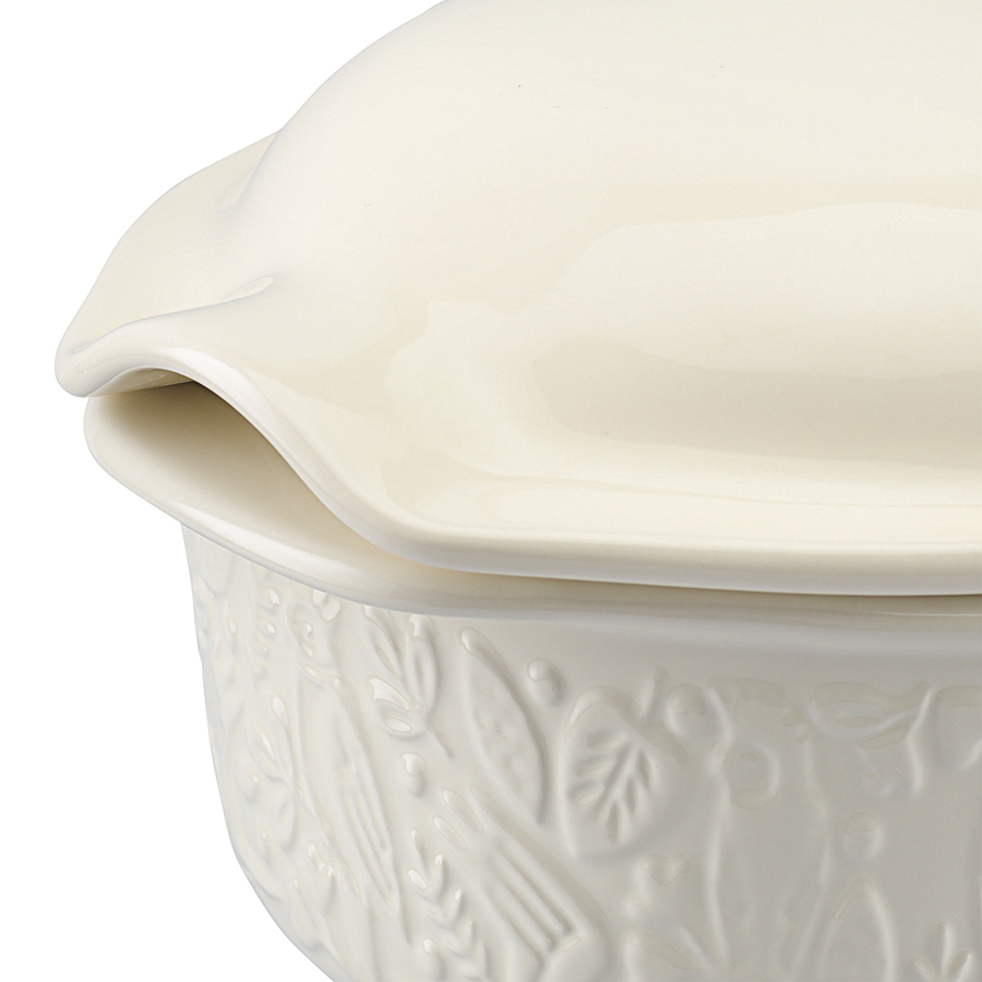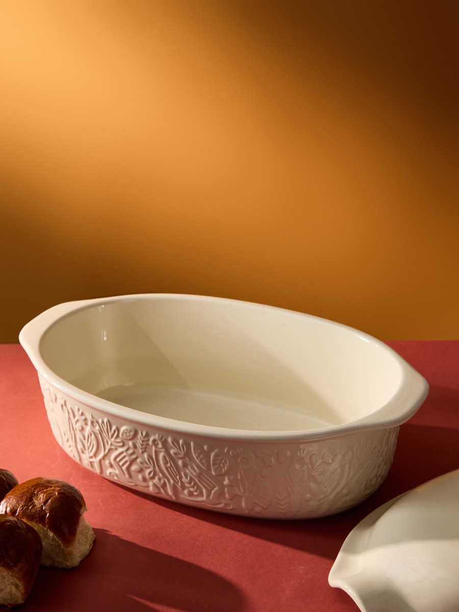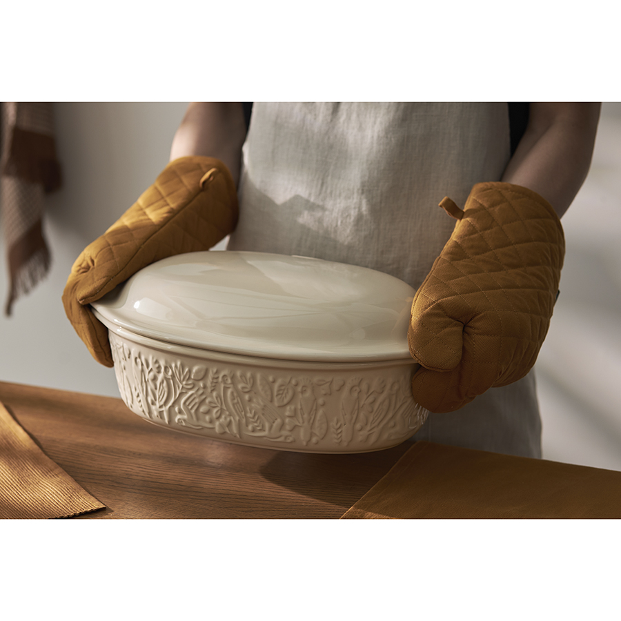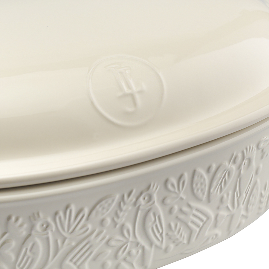 Форма для выпечки из коллекции Birds of Paradise – качественная посуда из экологичной каменной керамики, которая поможет легко приготовить вкусный и ароматный хлеб в домашних условиях. Особенности и преимущества: - Изготовленная из каменной керамики форма равномерно прогревается и создает условия для идеального пропекания теста. - Благодаря высокой прочности и устойчивости материала к износу изделие не теряет привлекательный внешний вид на протяжении всего срока службы. - Покрытие глазурью упрощает уход, обеспечивает декоративность и дополнительную защиту от внешних воздействий. - Отличительной особенностью серии является объемный узор природной тематики, добавляющий дизайну элегантные нотки. - Форма идеально подходит для выпекания как белого, так и черного хлеба. Наши продукты прошли испытания на отсутствие в составе свинца и кадмия в соответствии со стандартными тестами FDA. Коллекция Birds of Paradise разработана английской художницей Karen Wall, основным направлением творчества которой является создание иллюстраций для посуды, домашнего текстиля и детских книг. В основе дизайна – природные мотивы, вдохновленные традиционным фольклором Великобритании 19-го века. Атмосфера волшебного леса с райскими птицами погружает в мир добрых грез и фантазий, где всегда тепло, уютно и есть место чудесам. Материал: каменная керамика. Размеры: 25х38х15,5 см. Объем: 4 л. Цвет: кремовый. Можно использовать в микроволновой печи, духовке при температуре не более 230° C, а также замораживать при температуре не ниже -20° C. Допускается мытье в посудомоечной машине.