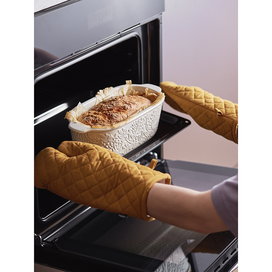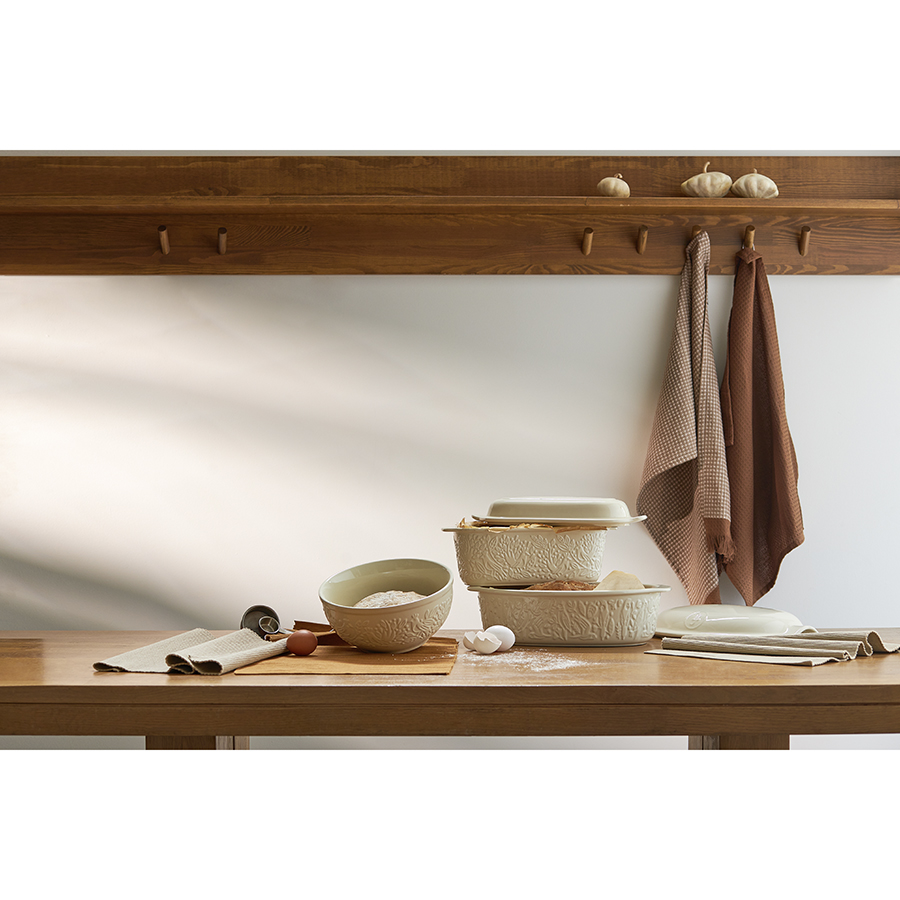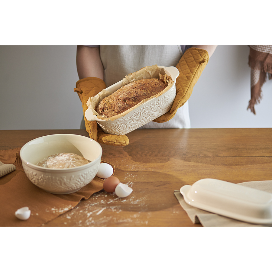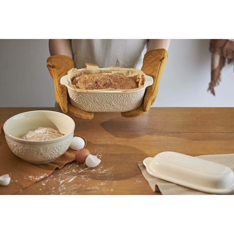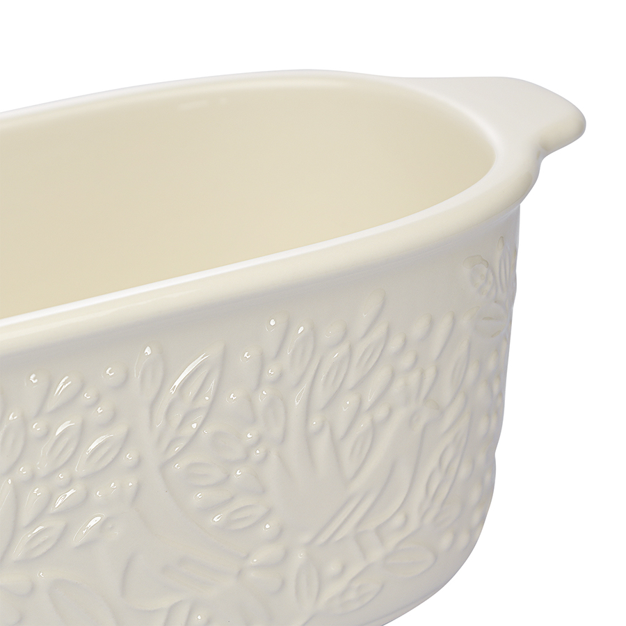 Форма для выпечки из коллекции Birds of Paradise – качественная посуда из экологичной каменной керамики, которая поможет легко приготовить вкусный и ароматный ржаной хлеб в домашних условиях. Особенности и преимущества: - Изготовленная из каменной керамики форма равномерно прогревается и создает условия для идеального пропекания теста. - Благодаря высокой прочности и устойчивости материала к износу изделие не теряет привлекательный внешний вид на протяжении всего срока службы. - Покрытие глазурью упрощает уход, обеспечивает декоративность и дополнительную защиту от внешних воздействий. - Отличительной особенностью серии является объемный узор природной тематики, добавляющий дизайну элегантные нотки. - Форма размером 33х16 см идеально подходит для выпекания ржаного хлеба. Наши продукты прошли испытания на отсутствие в составе свинца и кадмия в соответствии со стандартными тестами FDA. Коллекция Birds of Paradise разработана английской художницей Karen Wall, основным направлением творчества которой является создание иллюстраций для посуды, домашнего текстиля и детских книг. В основе дизайна – природные мотивы, вдохновленные традиционным фольклором Великобритании 19-го века. Атмосфера волшебного леса с райскими птицами погружает в мир добрых грез и фантазий, где всегда тепло, уютно и есть место чудесам. Материал: каменная керамика. Размеры: 16х33х15,5 см. Объем: 2,3 л. Цвет: кремовый. Можно использовать в микроволновой печи, духовке при температуре не более 230° C, а также замораживать при температуре не ниже -20° C. Допускается мытье в посудомоечной машине.