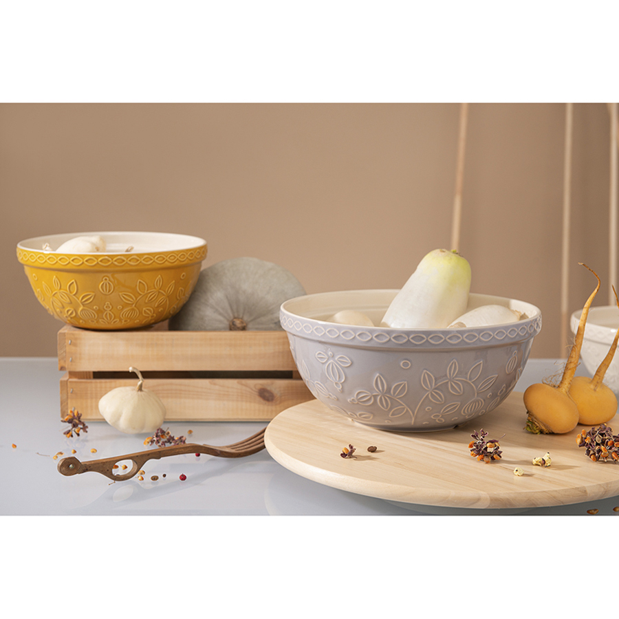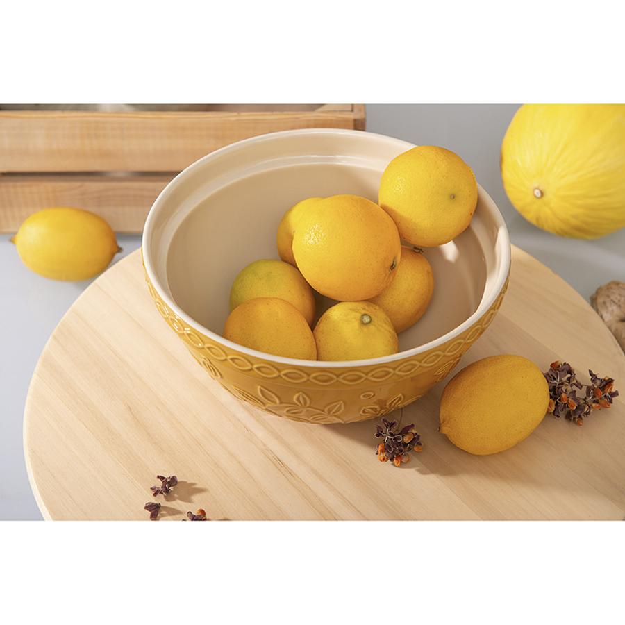 Миска горчичного цвета с рельефным узором Ягоды Тайги из коллекции Russian North облегчит процесс приготовления блюд и подойдет для сервировки. Посуда предназначена для замешивания теста, смешивания ингредиентов, а также подачи салатов или фруктов. Изделие украшено рельефным растительным узором в виде стилизованных веточек с ягодами и листьями. Миска, выполненная из прочной каменной керамики и покрытая глянцевой глазурью, устойчива к царапинам и сколам. Объем: 1,5 л. ! Можно использовать в микроволновой печи. ! Можно мыть в посудомоечной машине. ! Можно использовать в духовке при температуре не более 160° C. ! Можно замораживать.