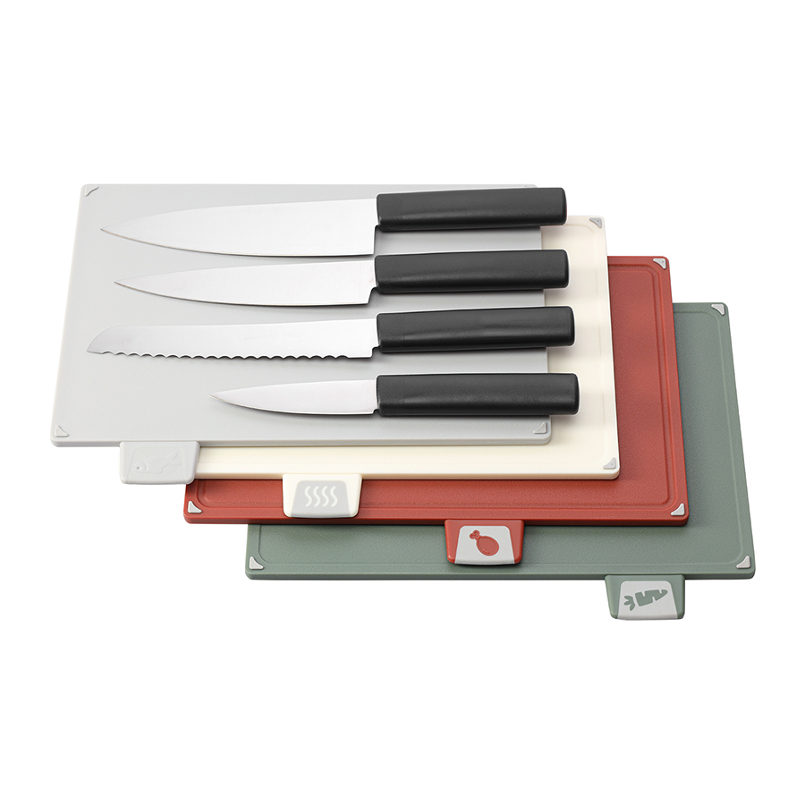 Набор из 4-х разделочных досок и 4-х ножей с держателем cut&store